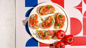 Салат с креветками, руколой и помидорами— блюдо с претензией на высокий гастрономический уровень. Так что, если вы хотите удивить близких или гостей, приготовьте это блюдо по нашему рецепту. Ингредиенты салата довольно простые, но вот на креветках в этом случае лучше не экономить. Мелкие замороженные не подойдут: нужны именно крупные королевские. После обжаривания в чесночно-перечном такие получатся очень ароматными, вкусными и сочными. Фету можно заменить, например, рассольной моцареллой. В этом случае ее следует посолить, а не только поперчить, как предложено в рецепте.