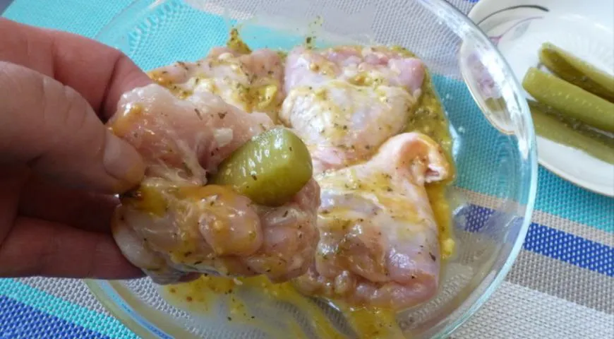 Куриные голени,замаринованные в горчичном маринаде от ТМ Махеев получаются очень сочными и ароматными. Особую пикантность придаёт маринованный огурчик.
