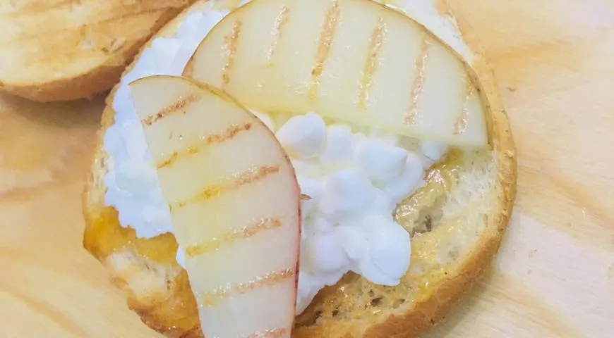 Грушу и накрываем второй половиной булочки. Ииии вкусный творожный бургер готов!