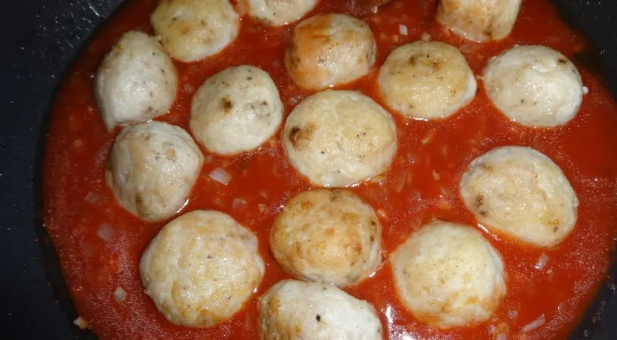 Фрикадельки можно не обжаривать. а сварить в пароварке, а при подаче полить приготовленным соусом.