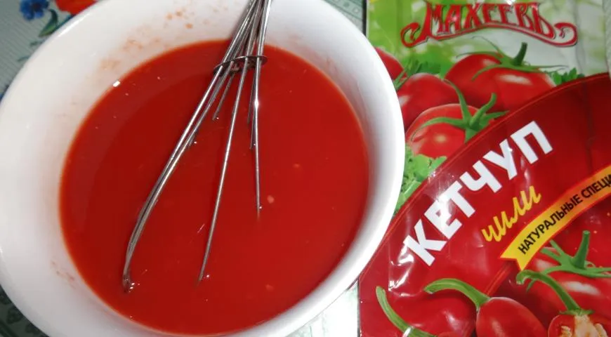 Для соуса кетчуп Чили "Махеев" развести холодной кипячёной водой.