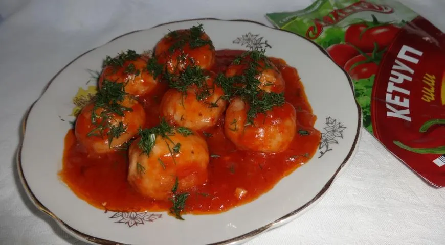 Нежные фрикадельки из куриного фарша в остром томатном соусе на основе кетчупа Чили "Махеев"понравятся любителям острых блюд. На гарнир можно подать отварной рис или картофельное пюре и салат из свежих овощей.