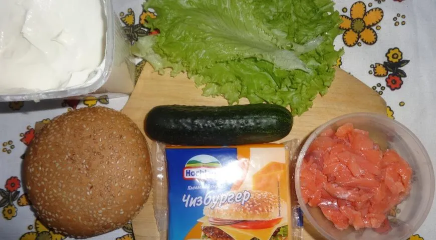 Подготовить продукты для приготовления бургеров. Листья салата промыть в проточной воде, обсушить бумажным полотенцем.
