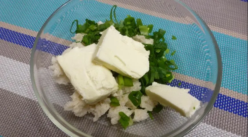 Смешать половину крошек батона с половиной сливочного масла и мелконарубленной зеленью. Приправить перцем.