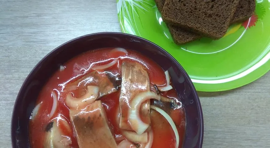 Подаём на подсушенном черном хлебе и обязательно с лучком. Приятного аппетита!