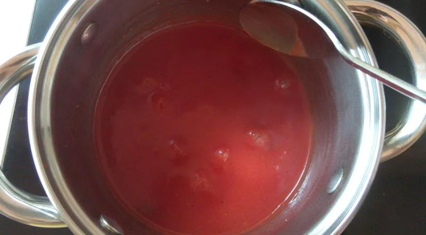 Готовим маринад: соединяем воду, кетчуп Махеев, соль, сахар и специи, доводим до кипения и провариваем несколько минут. После добавляем растительное масло и уксус, соединяем, остужаем до комнатной температуры