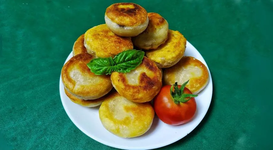 В сковороду добавляем растительное масло, разогреваем. Выкладываем пирожки, и обжариваем с двух сторон до золотистого цвета на среднем огне.