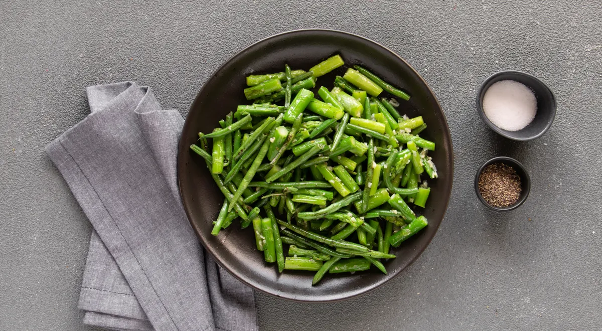 В глубокой сковороде разогрейте 2 ст. л. оливкового масла, добавьте половину сливочного и обжарьте чеснок, 30 сек. Выложите в сковородку фасоль и спаржу и готовьте на средне-сильном огне 5–6 мин. Аккуратно перемешайте, посолите и приправьте перцем. Переложите овощи на тарелку.