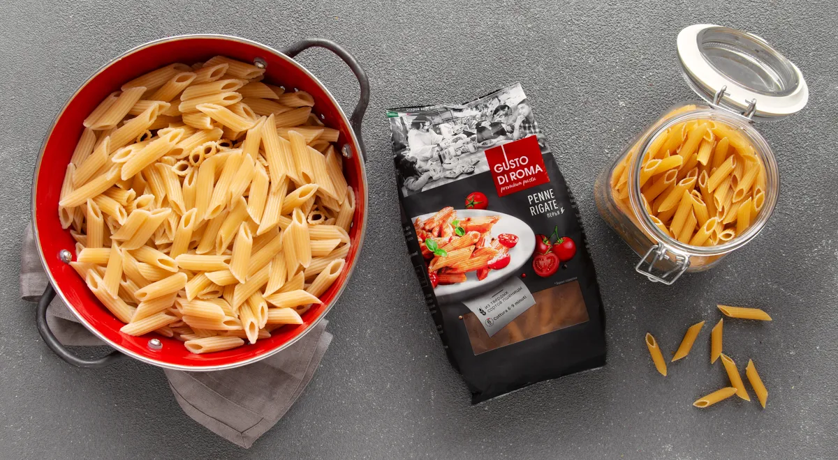 Доведите до кипения 2,5 л воды, посолите, всыпьте «перья» и варите на среднем огне 8 мин. Отбросьте на дуршлаг, дайте стечь жидкости.