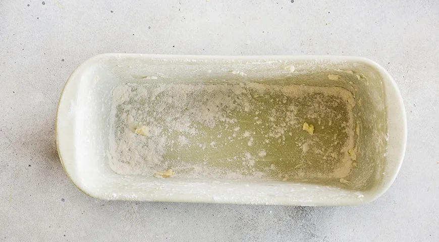Разогрейте духовку до 160°С. Форму для кекса смажьте сливочным маслом и присыпьте небольшим количеством муки.