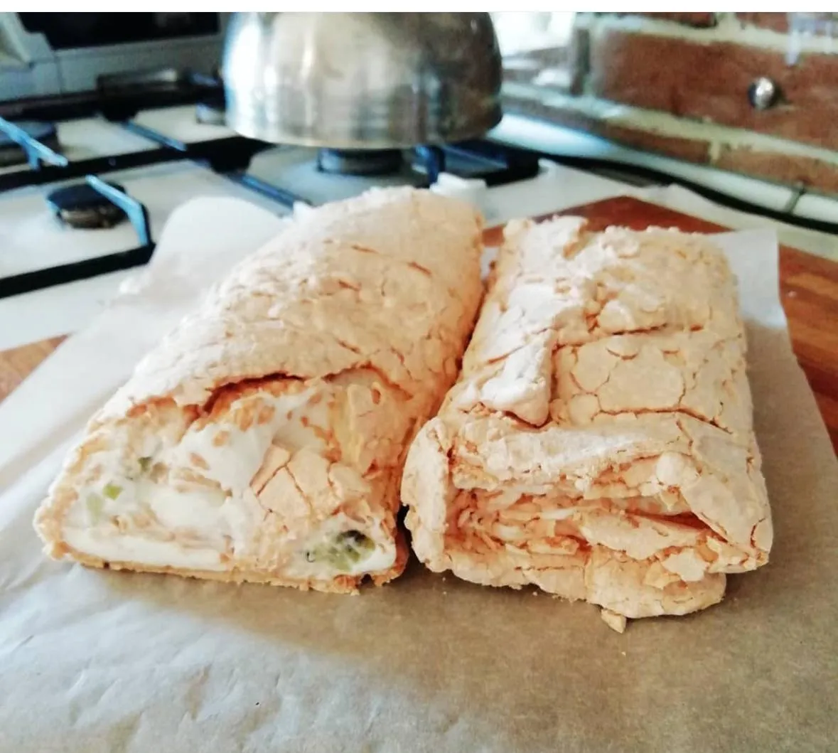 Меренговый рулет это изысканный и нежный десерт, который, как ни странно, легко приготовить дома. Если вы любите невесомое хрустящее безе, скорее принимайтесь за дело – весь процесс займет не более часа. Поводом, чтобы сделать такой десерт может стать любое событие – от Нового года до романтического свидания! Постарайтесь не передержать меренгу в духовке и не устанавливайте слишком сильный нагрев – пересохший корж практически невозможно свернуть в рулет, не раскрошив. Выпекайте корж до легкого кремового оттенка. На поверхности должна образоваться хрустящая корочка, а серединка коржа при этом должна остаться достаточно мягкой. И не стремитесь придать рулету слишком правильную форму – напротив, легкая небрежность его только украсит.