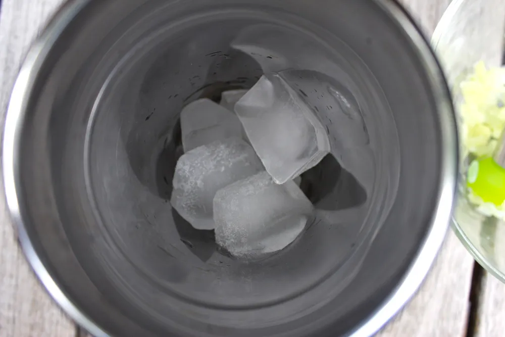6-8 кубиков льда измельчите в блендере, добавьте к кофе с молоком.