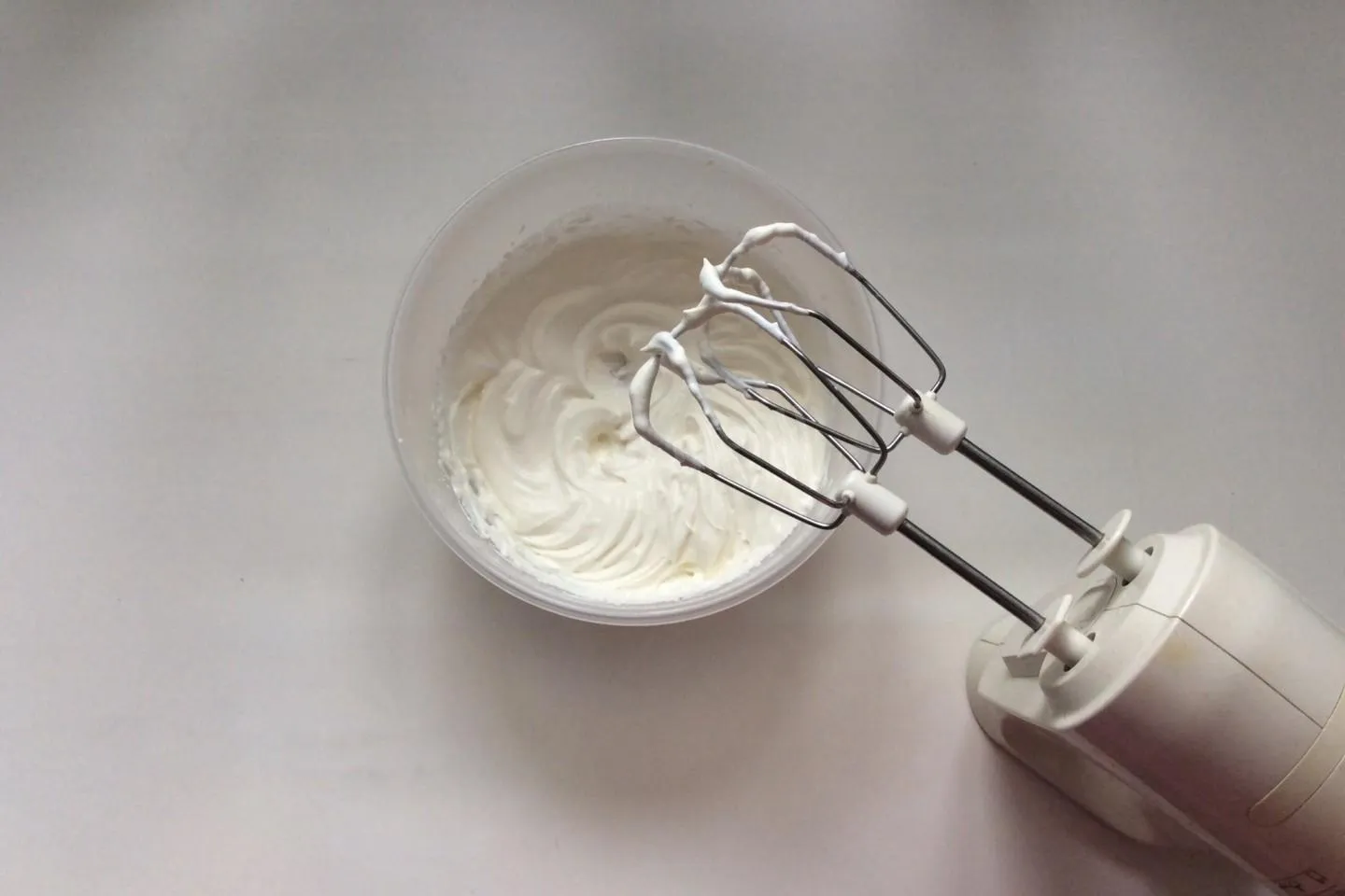 Сливки взбейте до крепкой пены, добавив немного сахара.