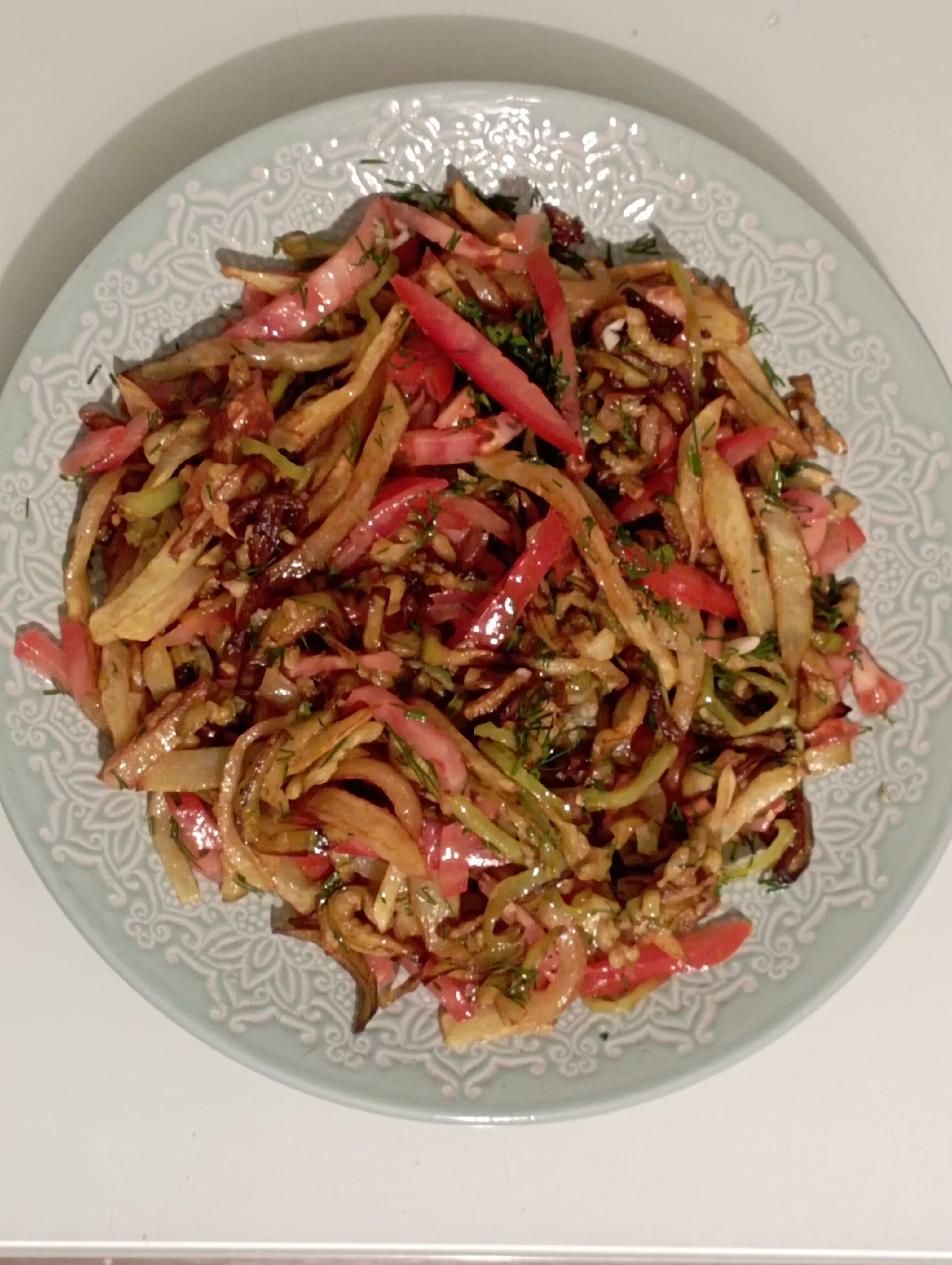 Теплый салат «Радуга» — блюдо для легкого летнего ужина.