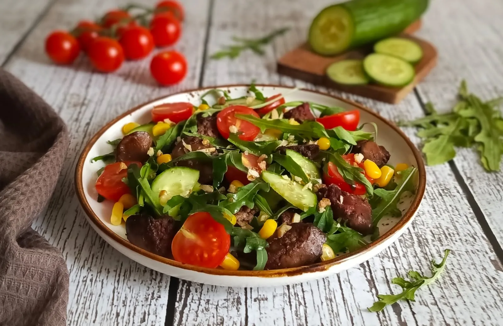 Вкусный и сытный салат с овощами и куриной печенью отличает оригинальное сочетание ингредиентов. Его приготовление не занимает много времени, а вкусен он как в теплом, так и в холодном виде. Вот почему в нашей семье этот салат чаще всего появляется на столе.