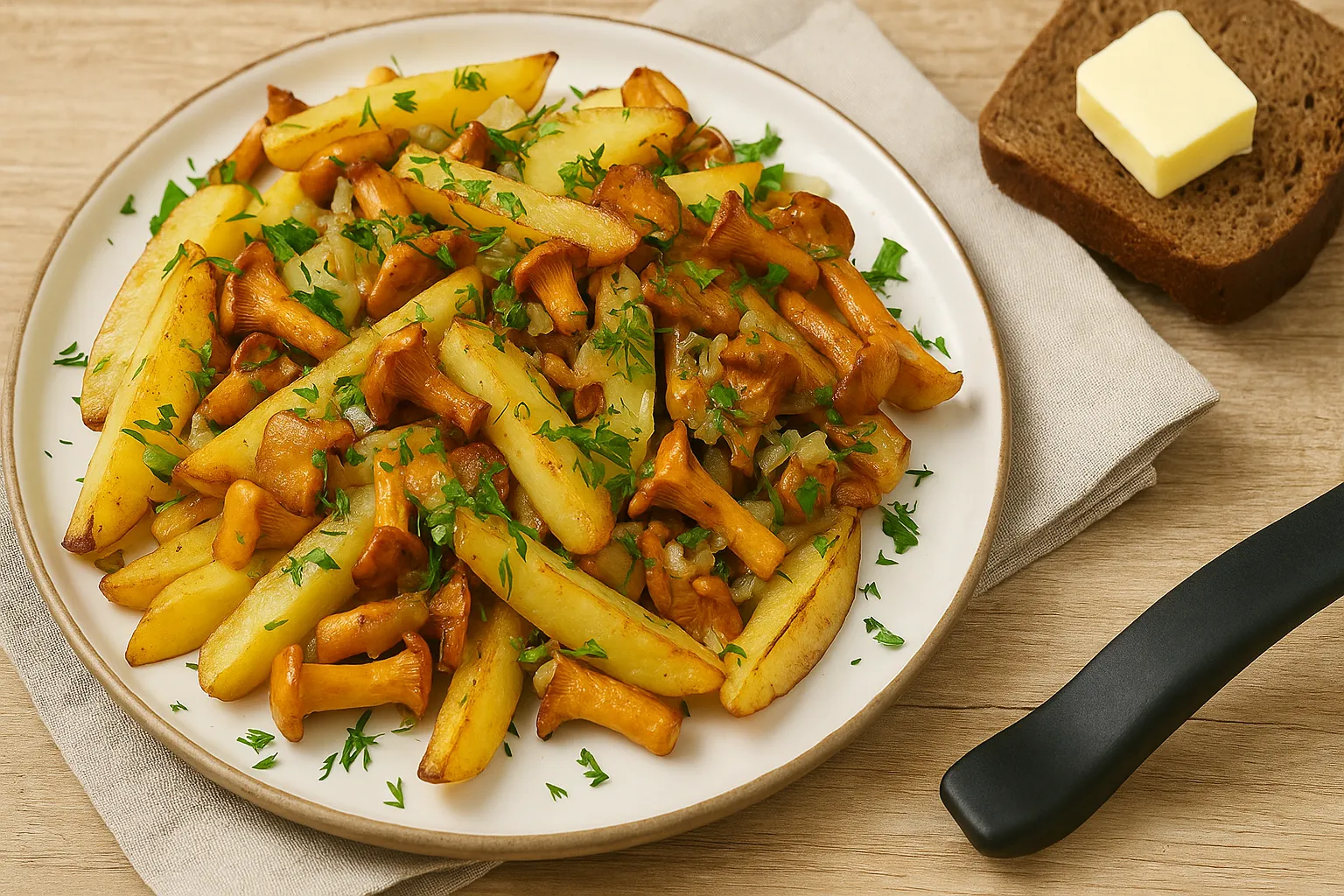 Это блюдо у меня ассоциируется с летом в деревне. Мы собирали лисички рано утром в лесу, а бабушка жарила их с картошкой на чугунной сковороде. Аромат стоял на всю улицу. Сегодня я готовлю это блюдо по тому же рецепту, чтобы сохранить тот самый вкус детства.