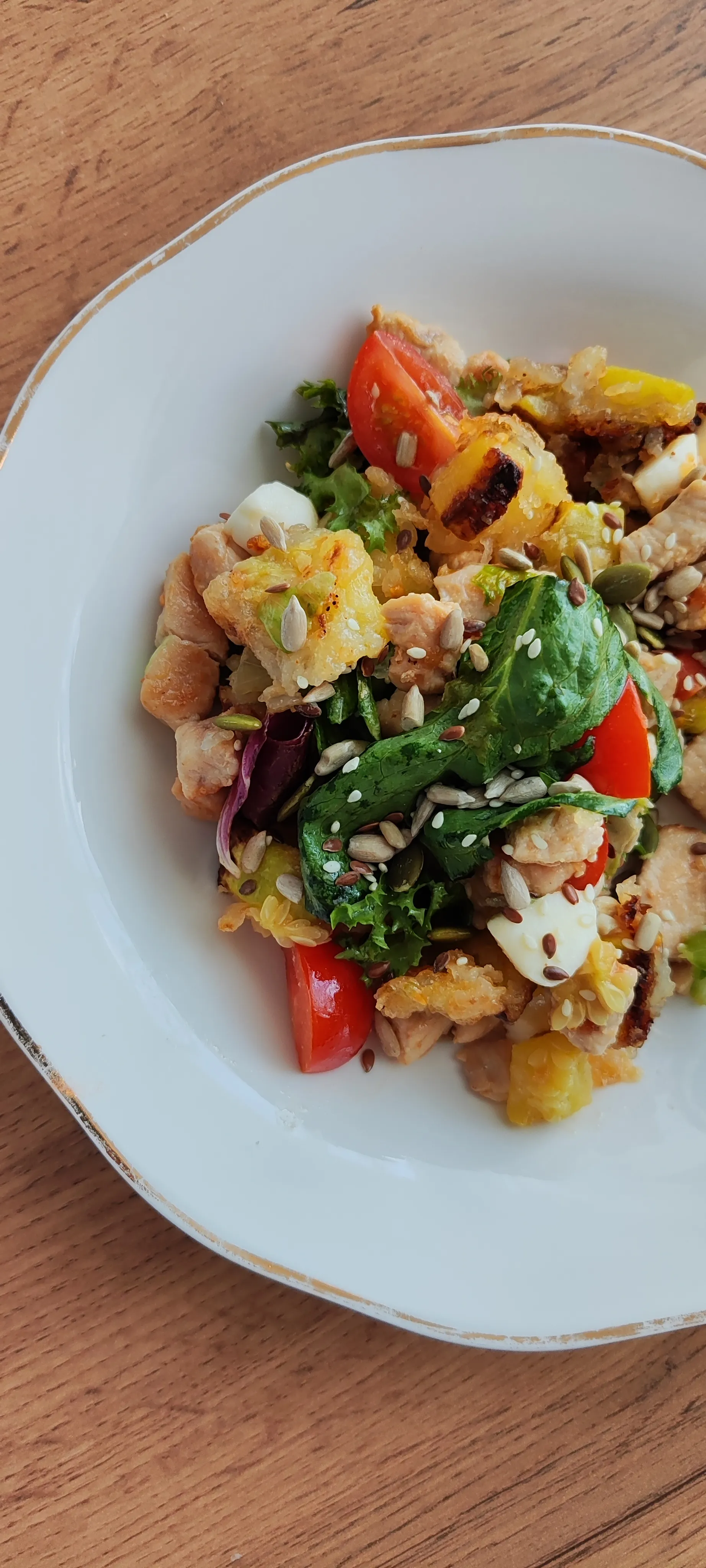 Делюсь рецептом своего любимого теплого салата. Идеальное блюдо для лета, когда не хочется тяжелой пищи.