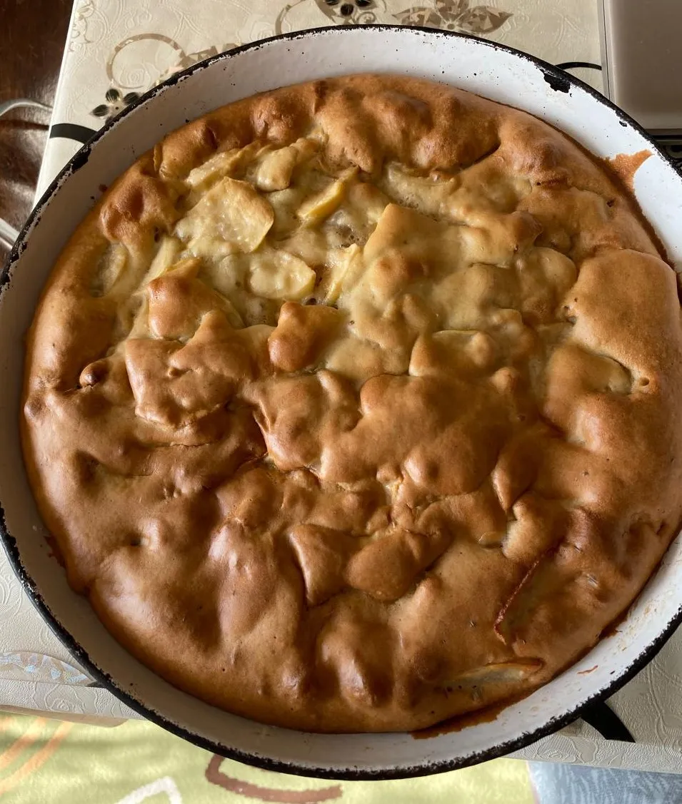 Залейте яблоки приготовленным тестом.