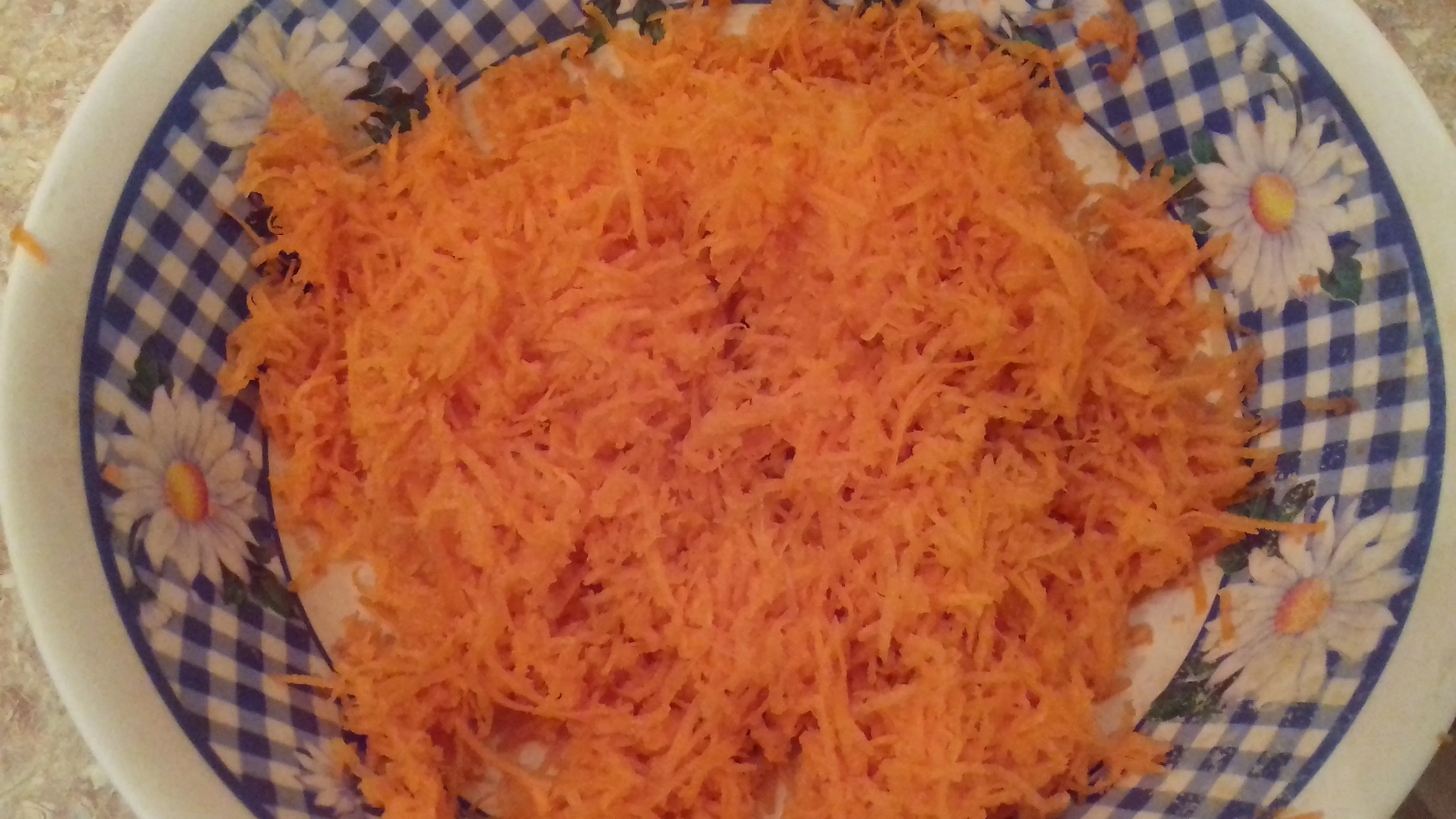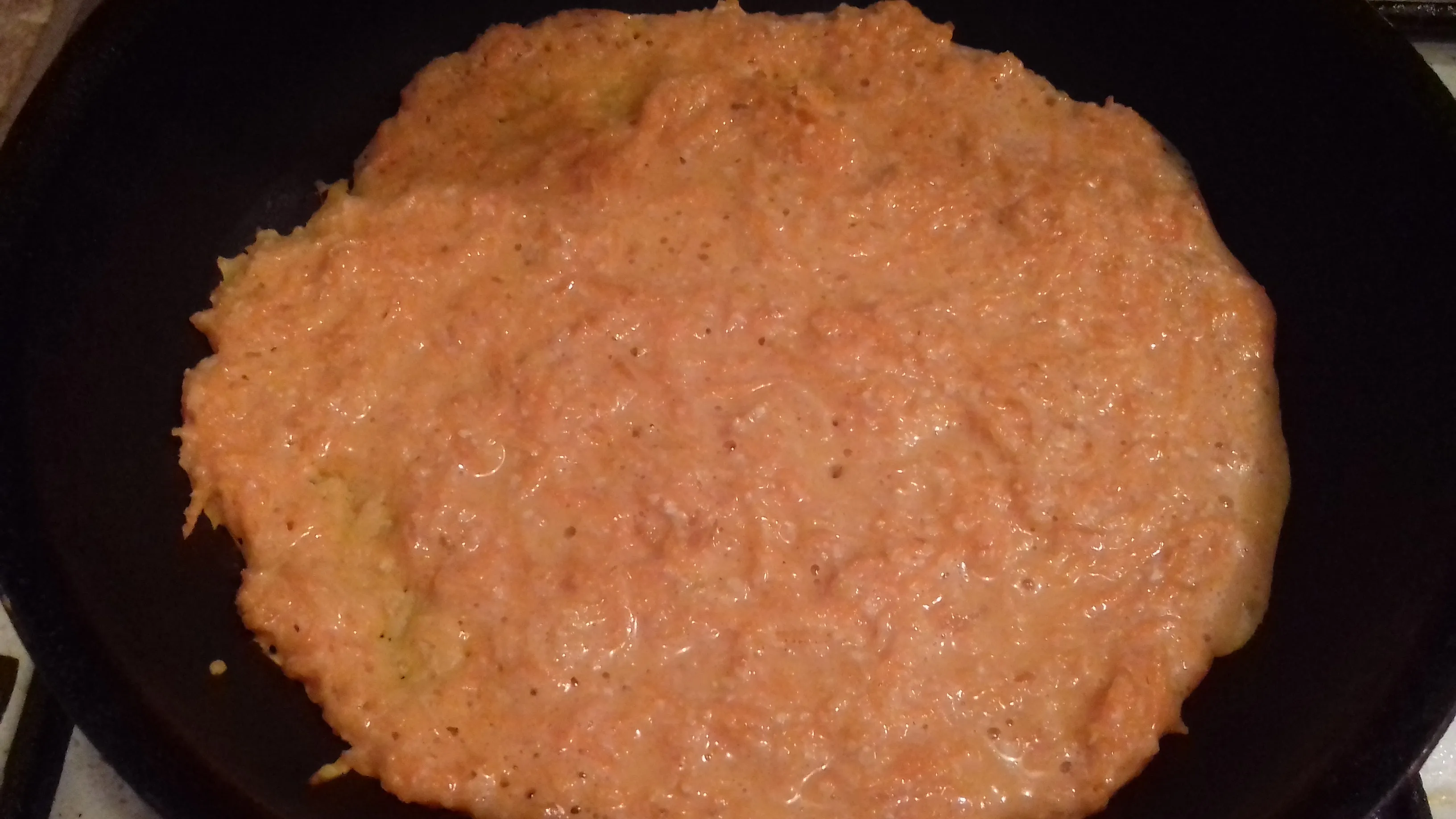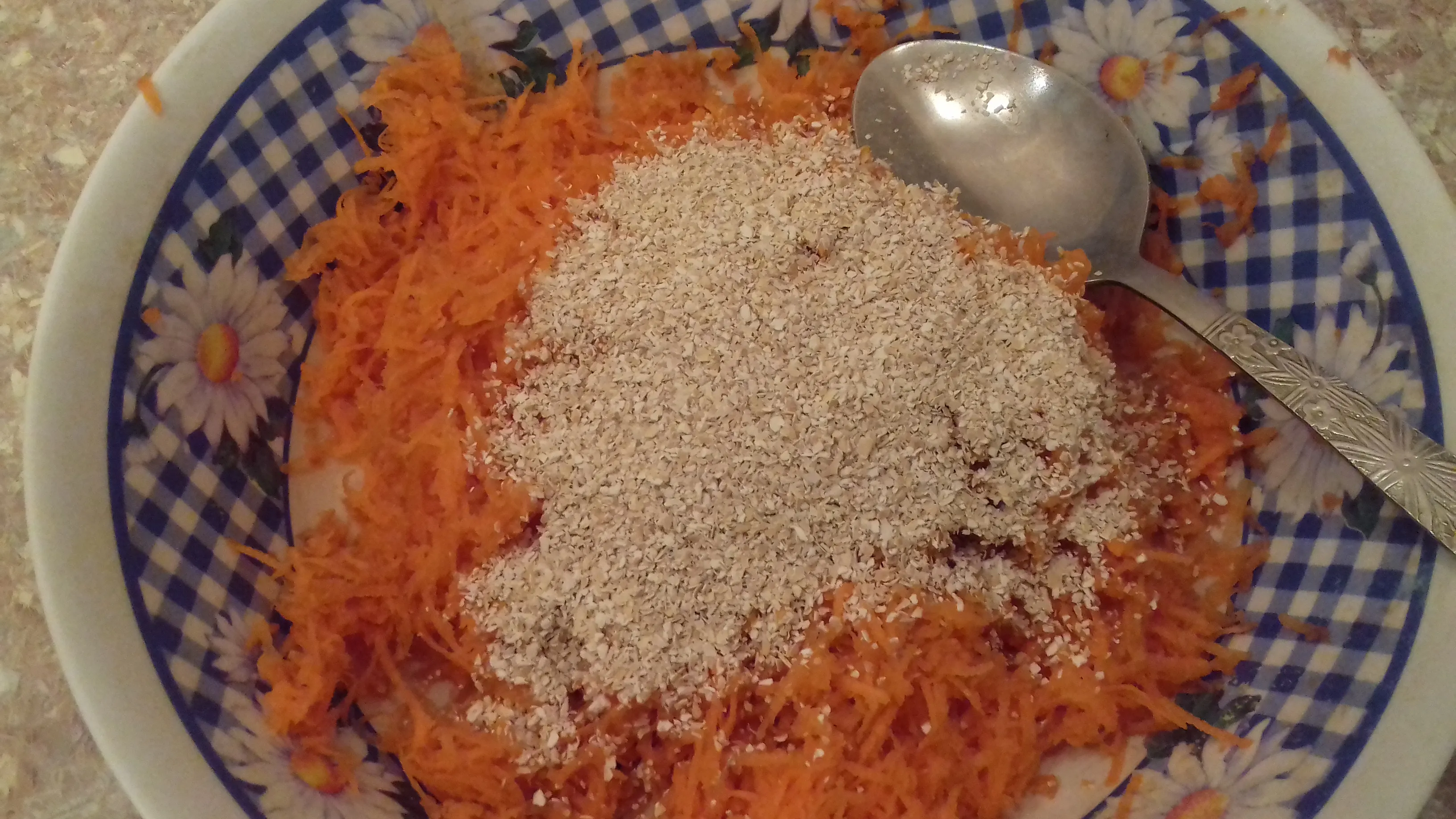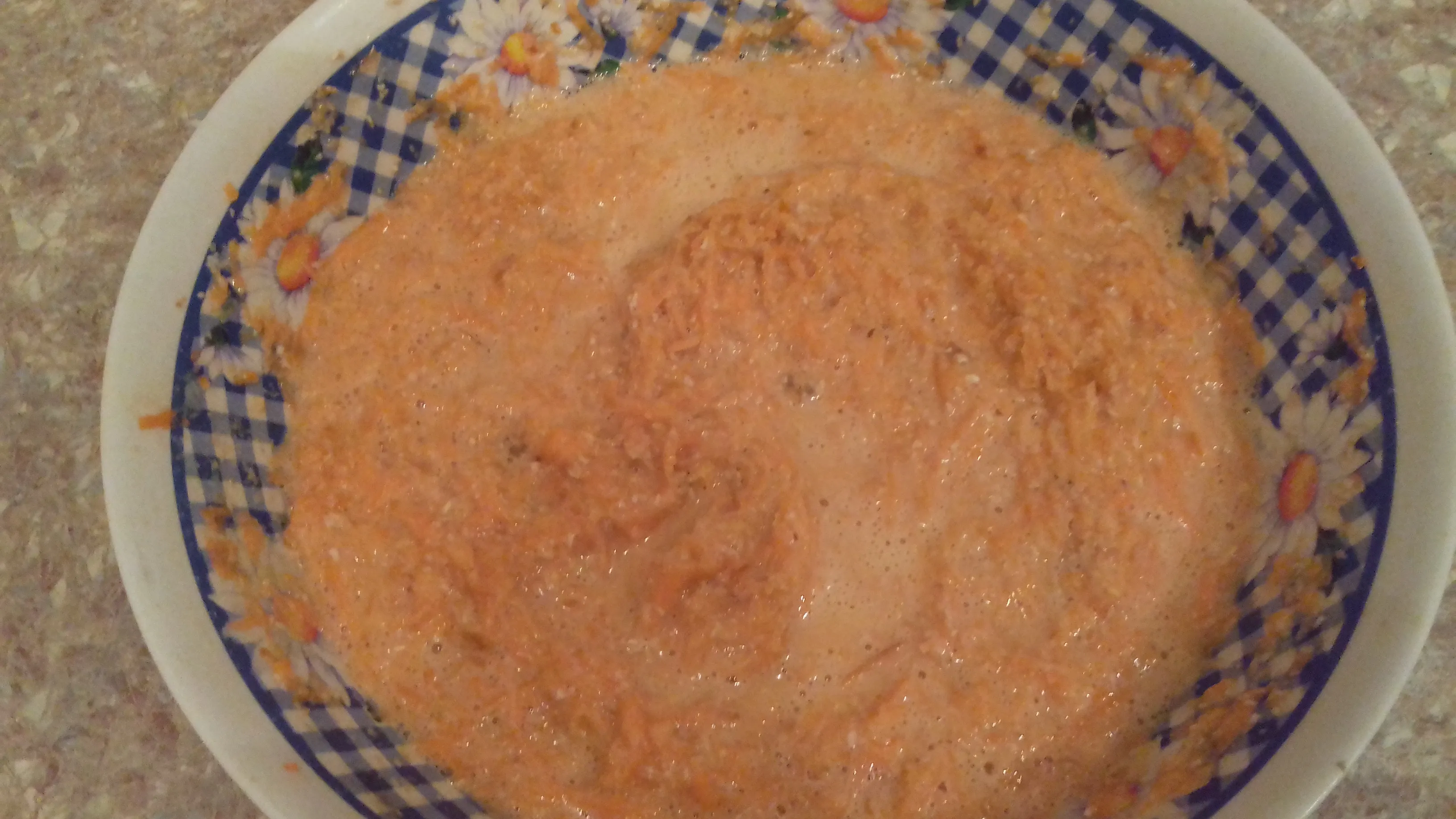 Взбейте яйца, добавьте к морковно-крахмальной массе, размешайте с медом и растительным маслом.
