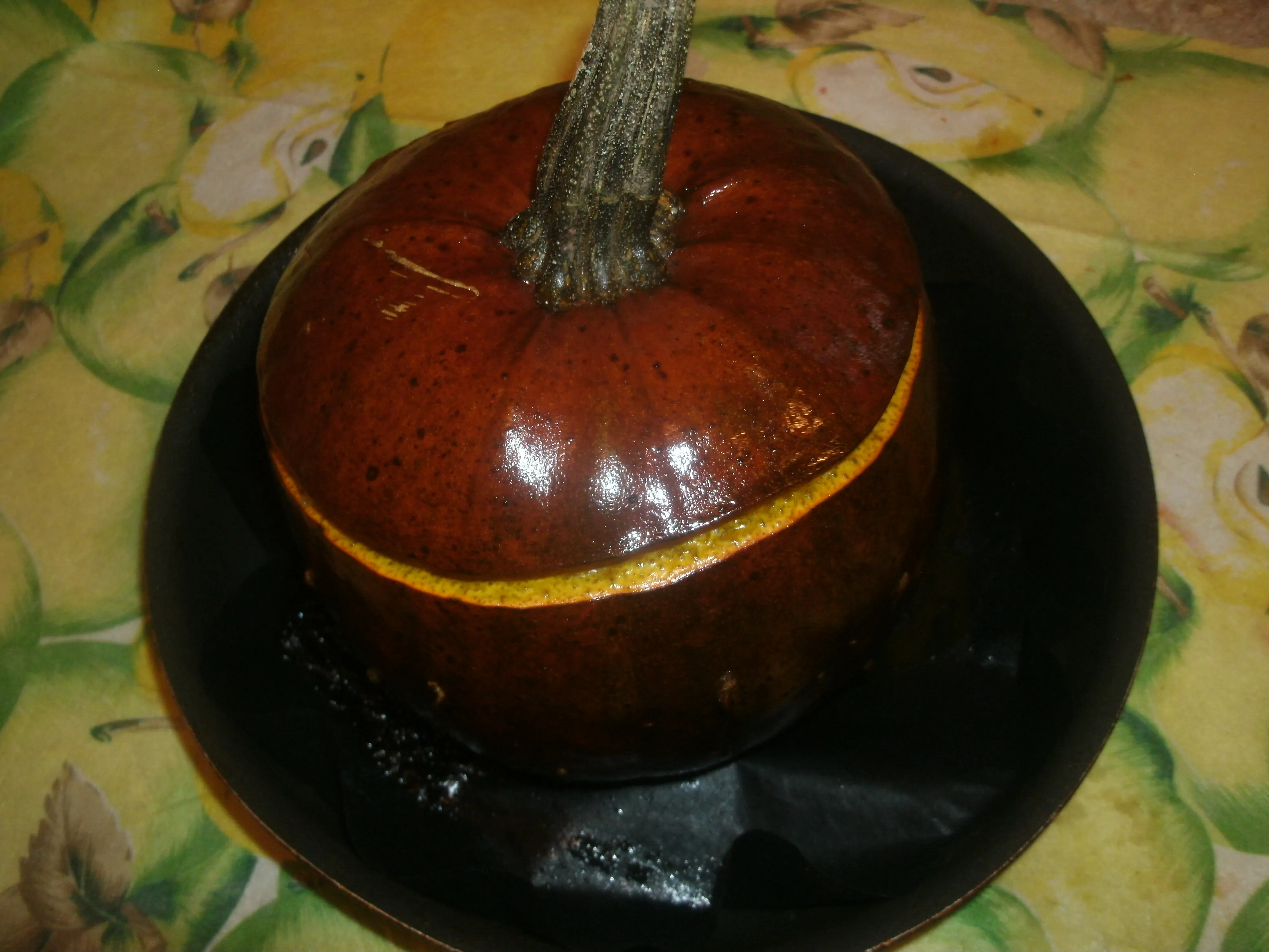 Запекайте фаршированную тыкву в разогретой до 200 градусов духовке в течение часа.