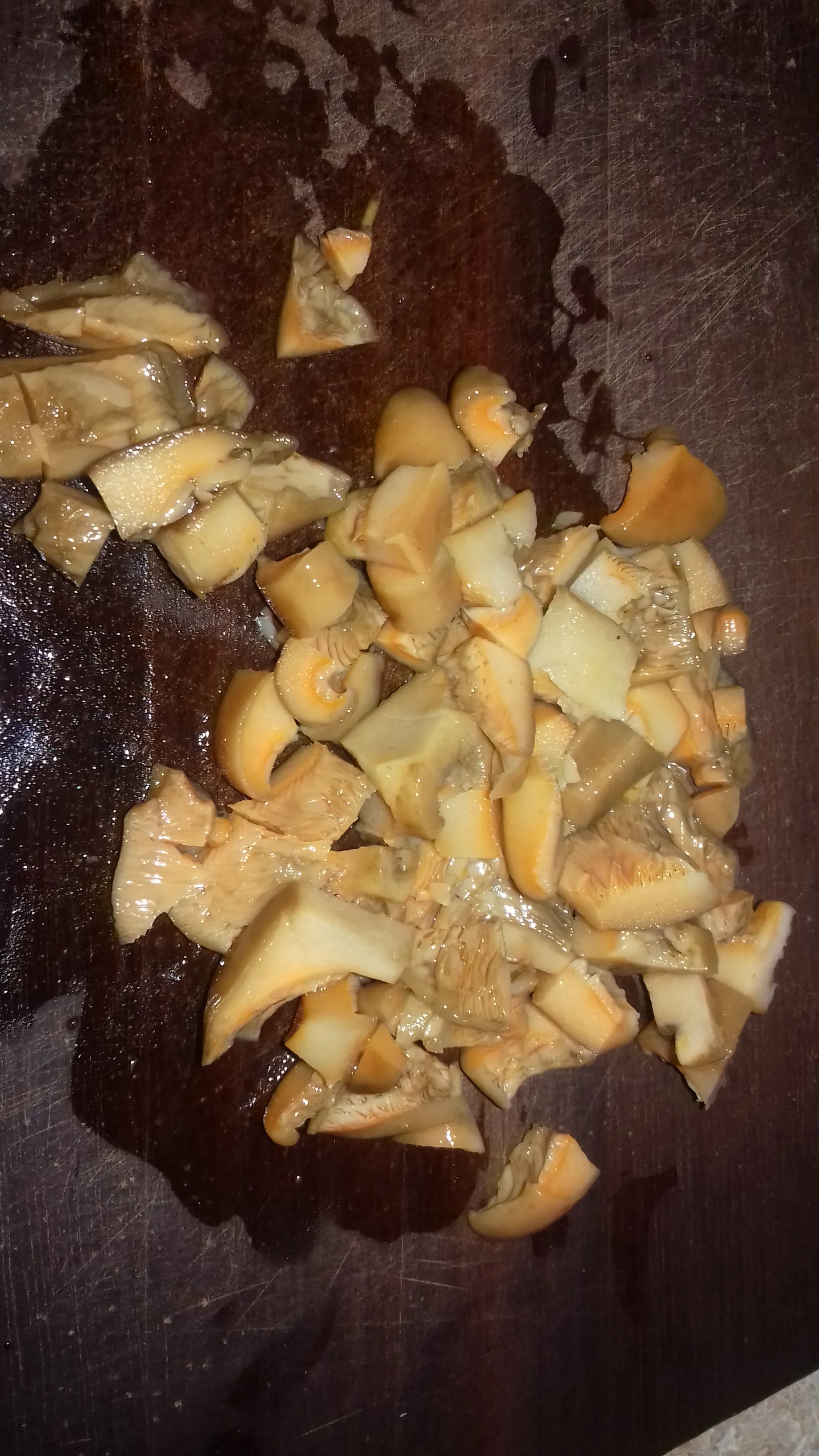 Грибы нарежьте небольшими кусочками, слегка обжарьте.