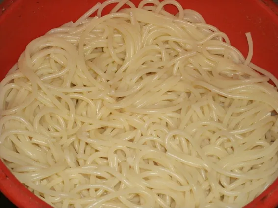 Затем выложите в сковороду спагетти и хорошенько размешайте. Подавая на стол, посыпьте блюдо оставшимся сыром.