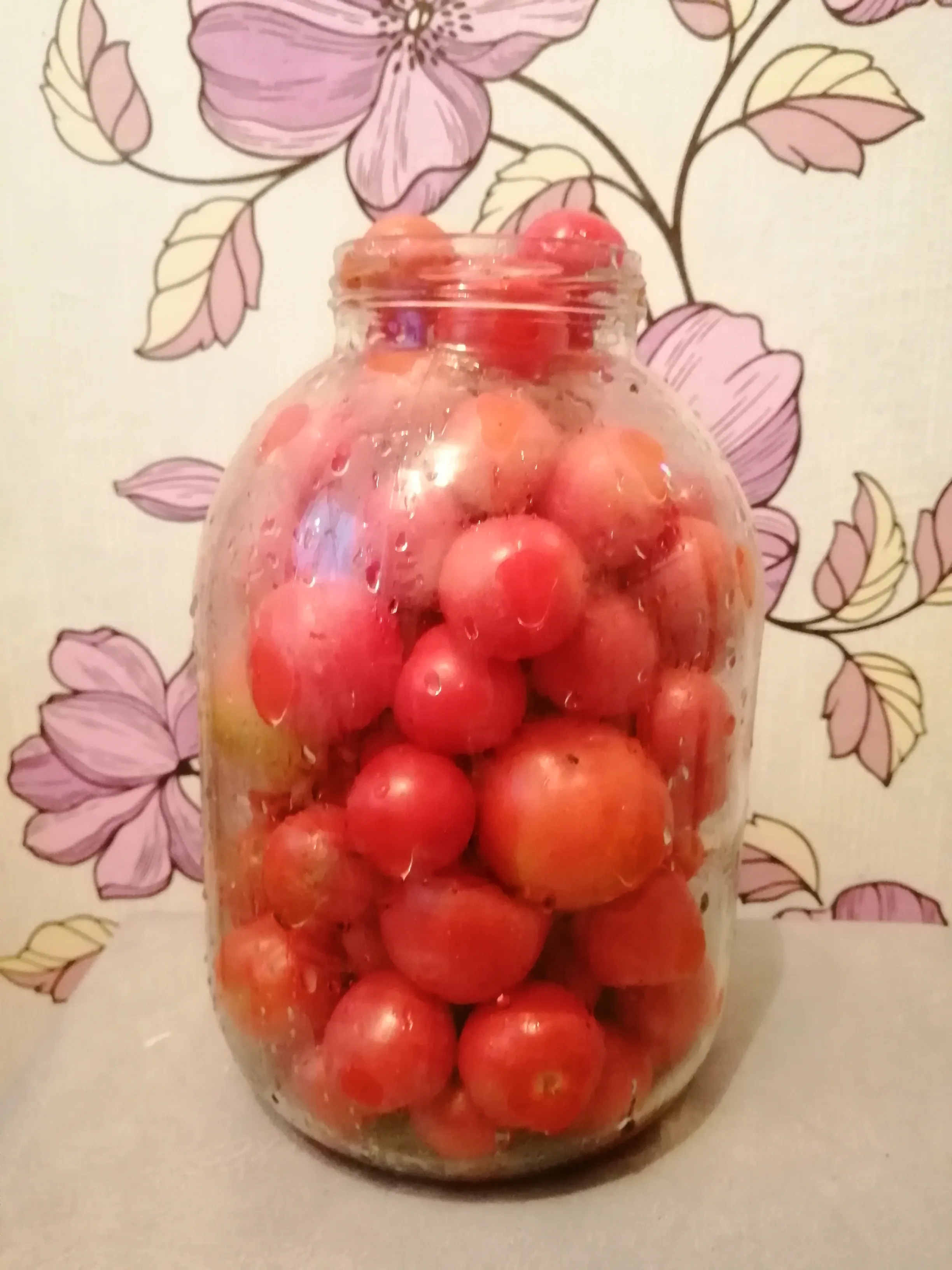 Стерилизуйте помидоры в банке на водяной бане 15 минут.