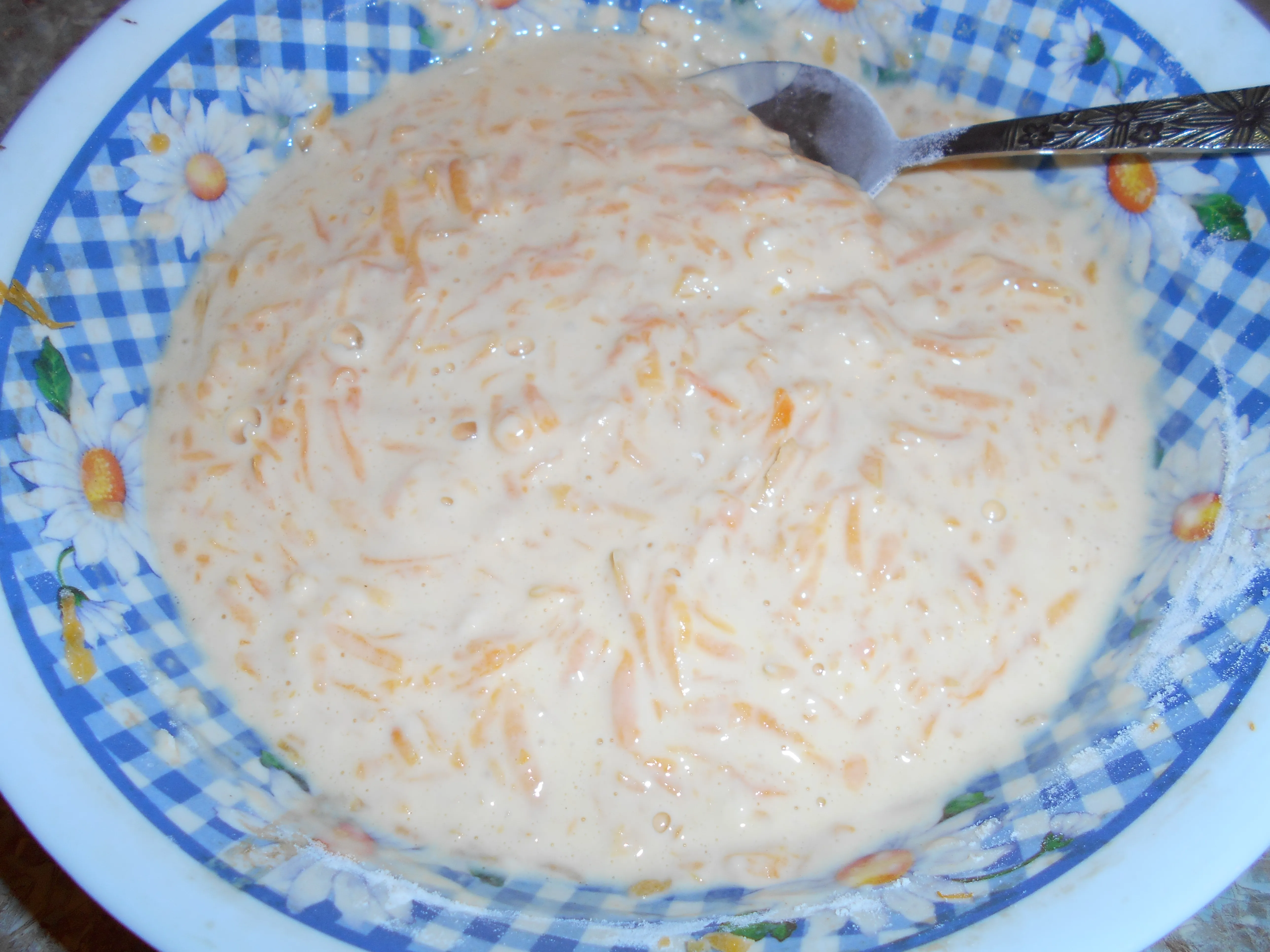 Замесите тесто как на оладьи: из кефира (или молока), муки, разрыхлителя, щепотки соли и яйца. Добавьте в тесто тертую тыкву, размешайте.