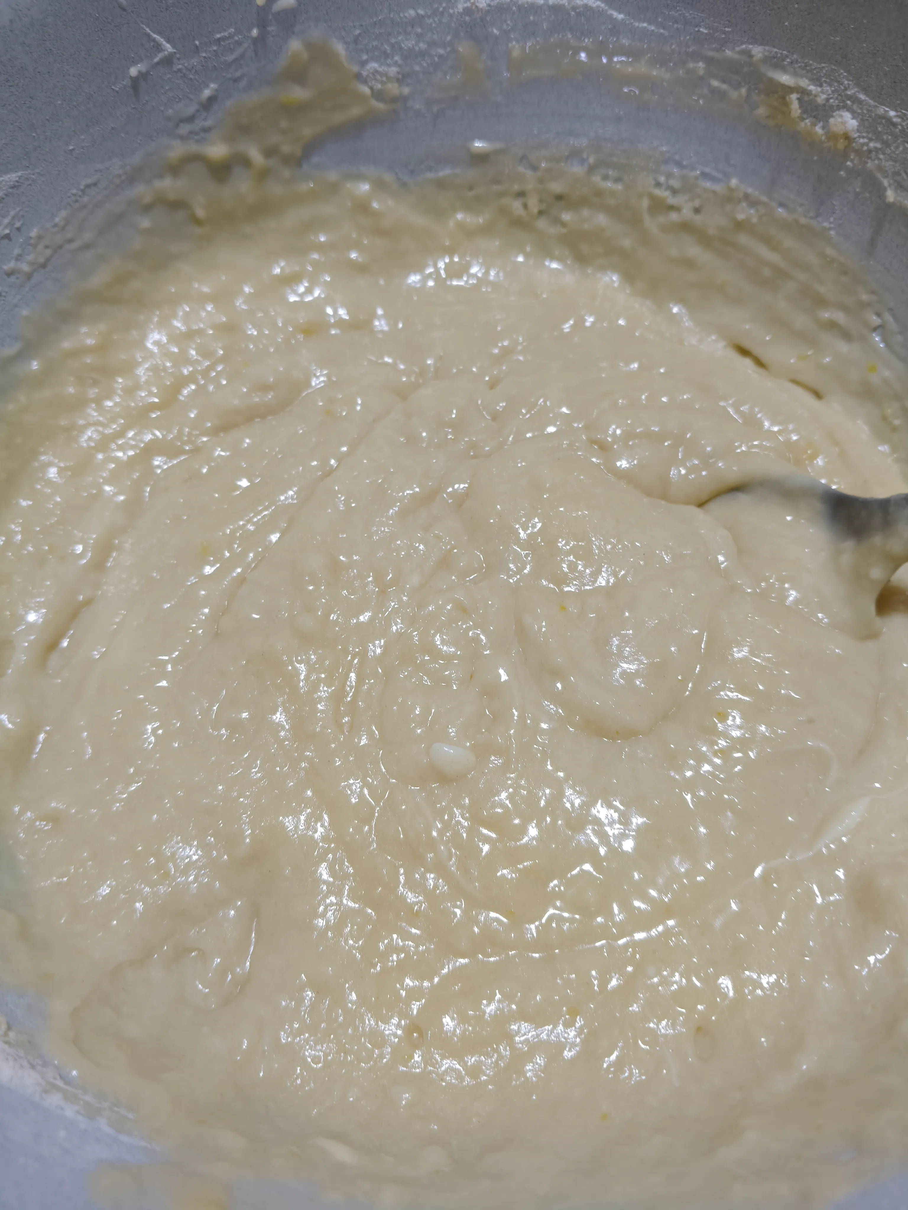 Смешайте яйца, сахар и растопленное сливочное масло. Добавьте кефир и чайную ложку соды, перемешайте. Добавьте мед и всыпьте около 300 г муки. Перемешайте до консистенции густой сметаны.