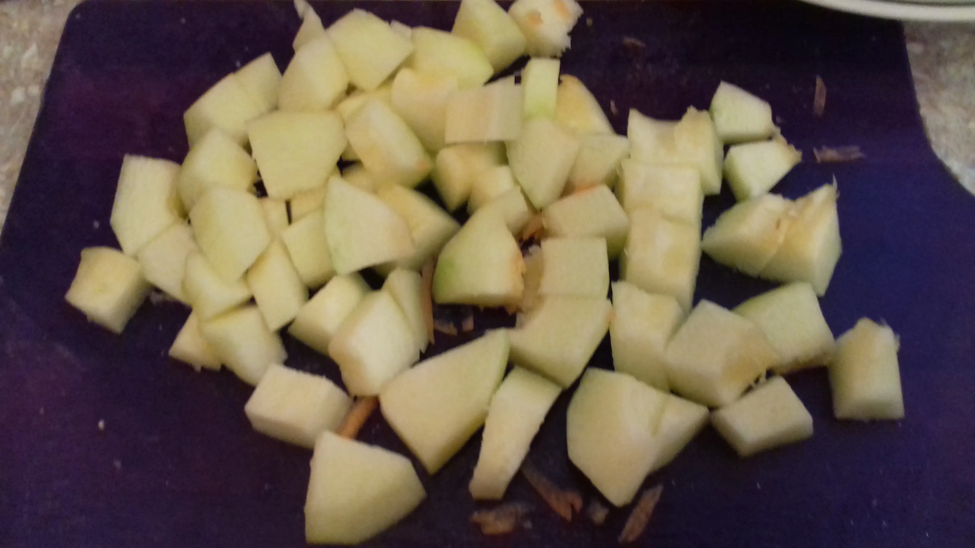 Мясо индейки нарежьте кубиками и тоже обжарьте, добавив соль и специи. Оно достаточно жирное, и если использовать антипригарную сковороду, то можно обжарить и без масла.