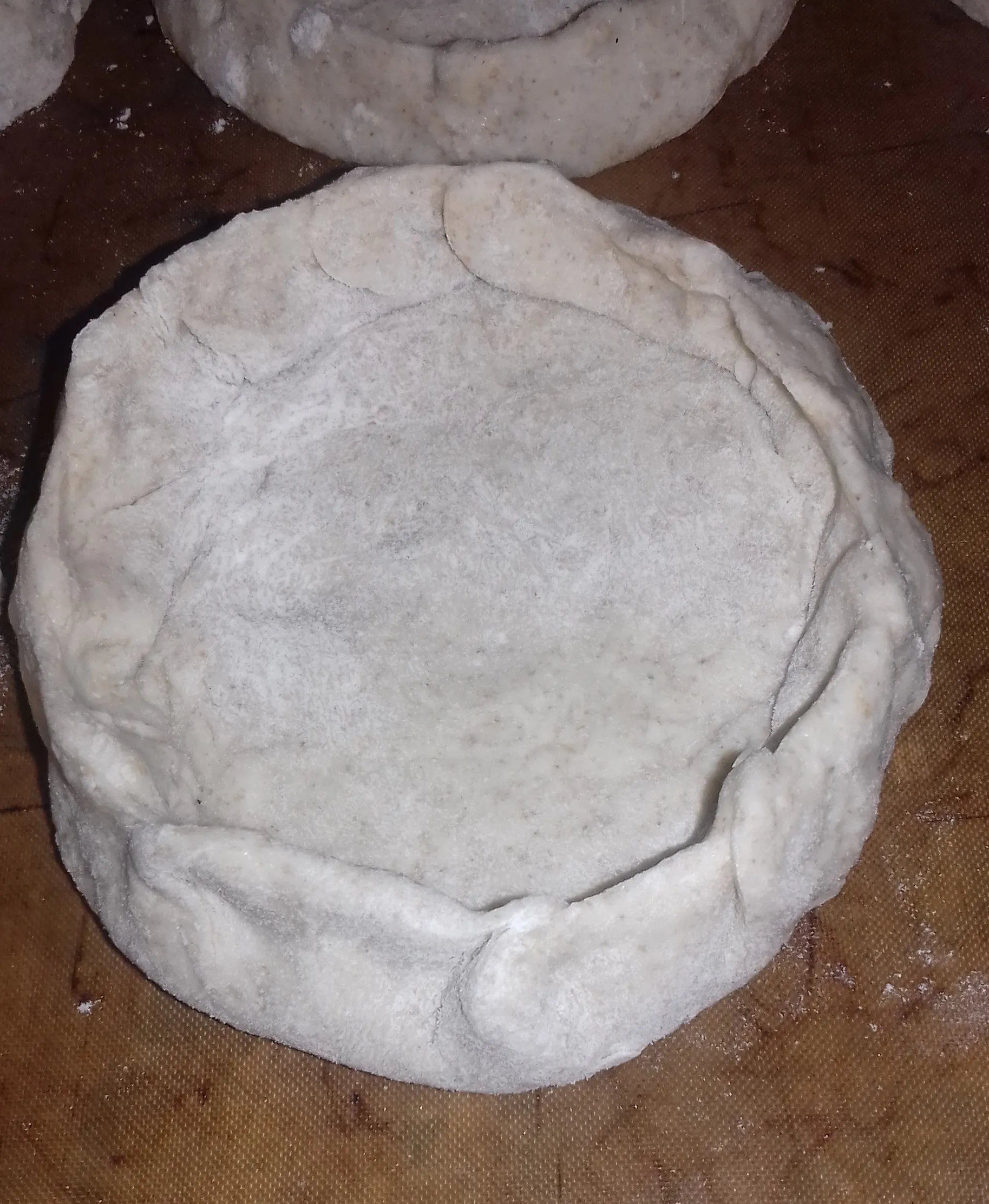 Сделайте корзиночки: приподнимая край, одним пальцем с внутренней стороны придерживайте тесто, а с внешней стороны двумя пальцами защипывайте, формируя «бортики». Выложите их на противень.