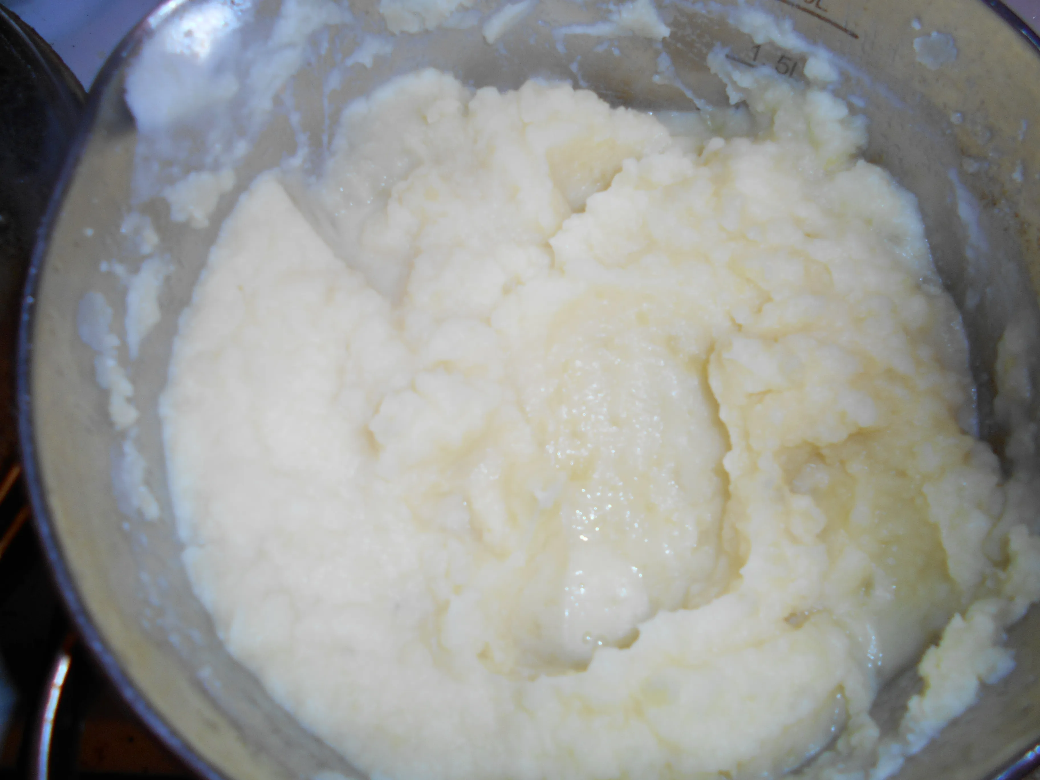 Отварите картофель, сделайте из него пюре с молоком и сливочным маслом.