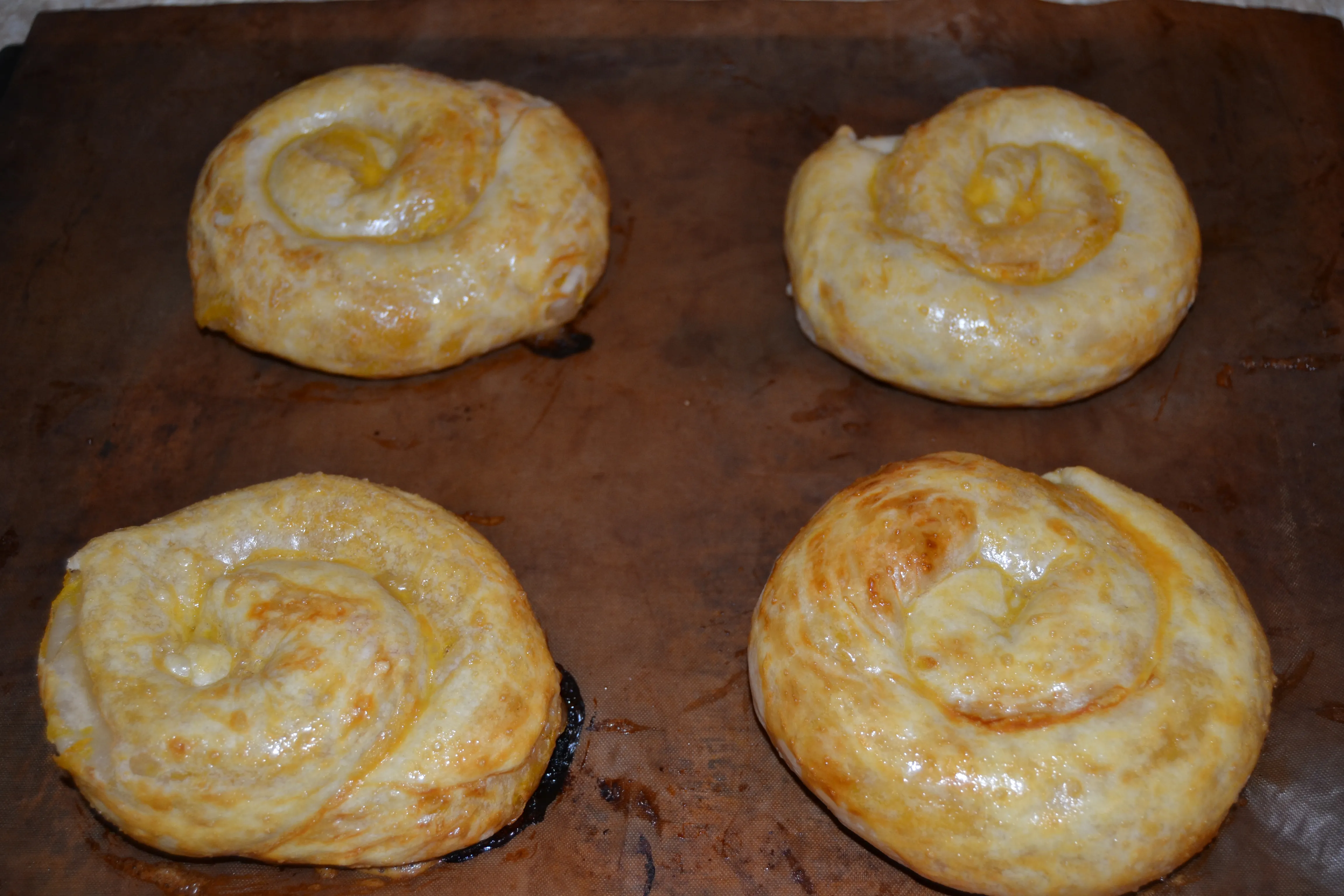 Готовые улитки смажьте взбитым желтком и отправьте в духовку запекаться до румяного цвета (минут 30 - 40) при 180°C.