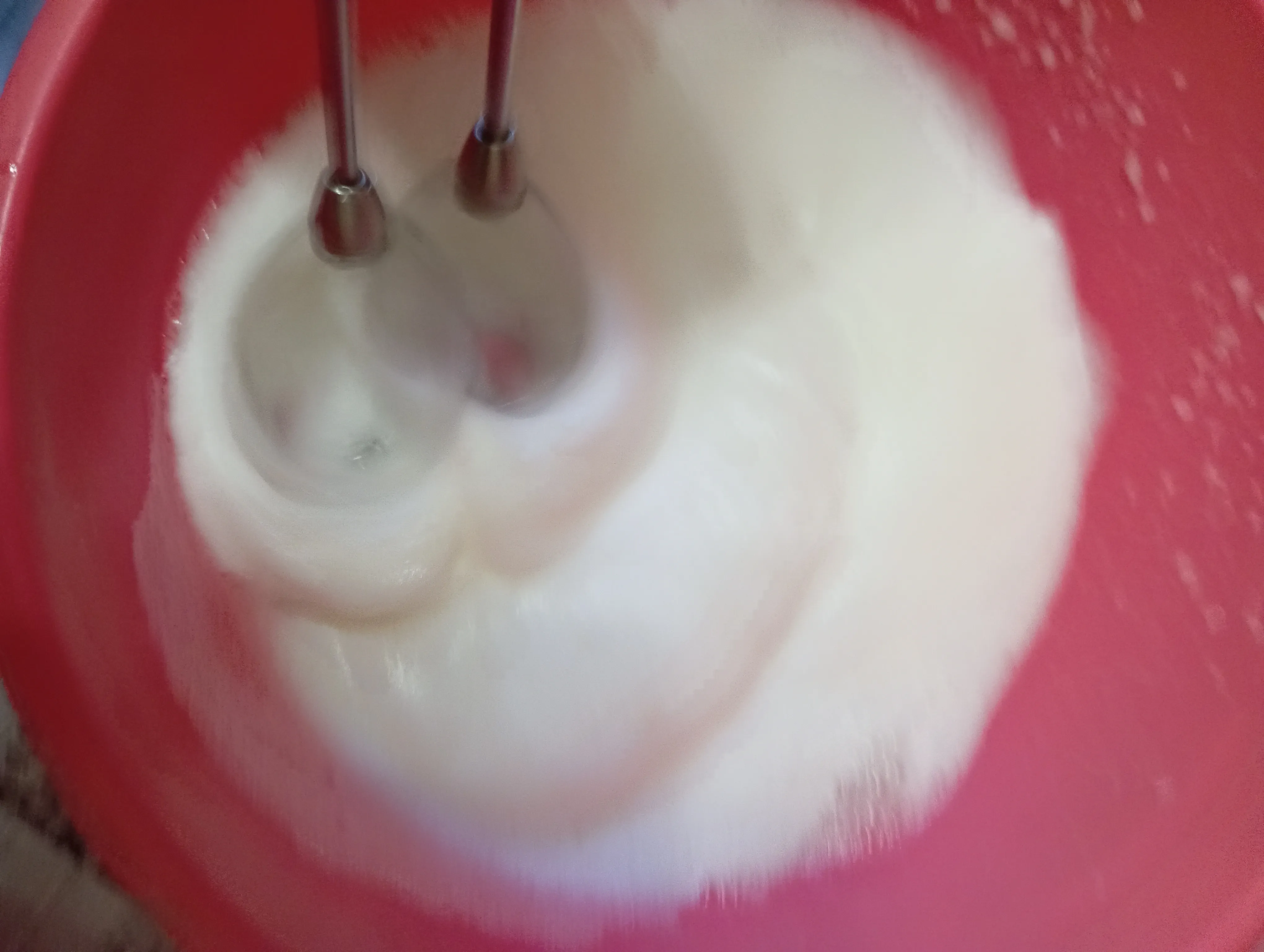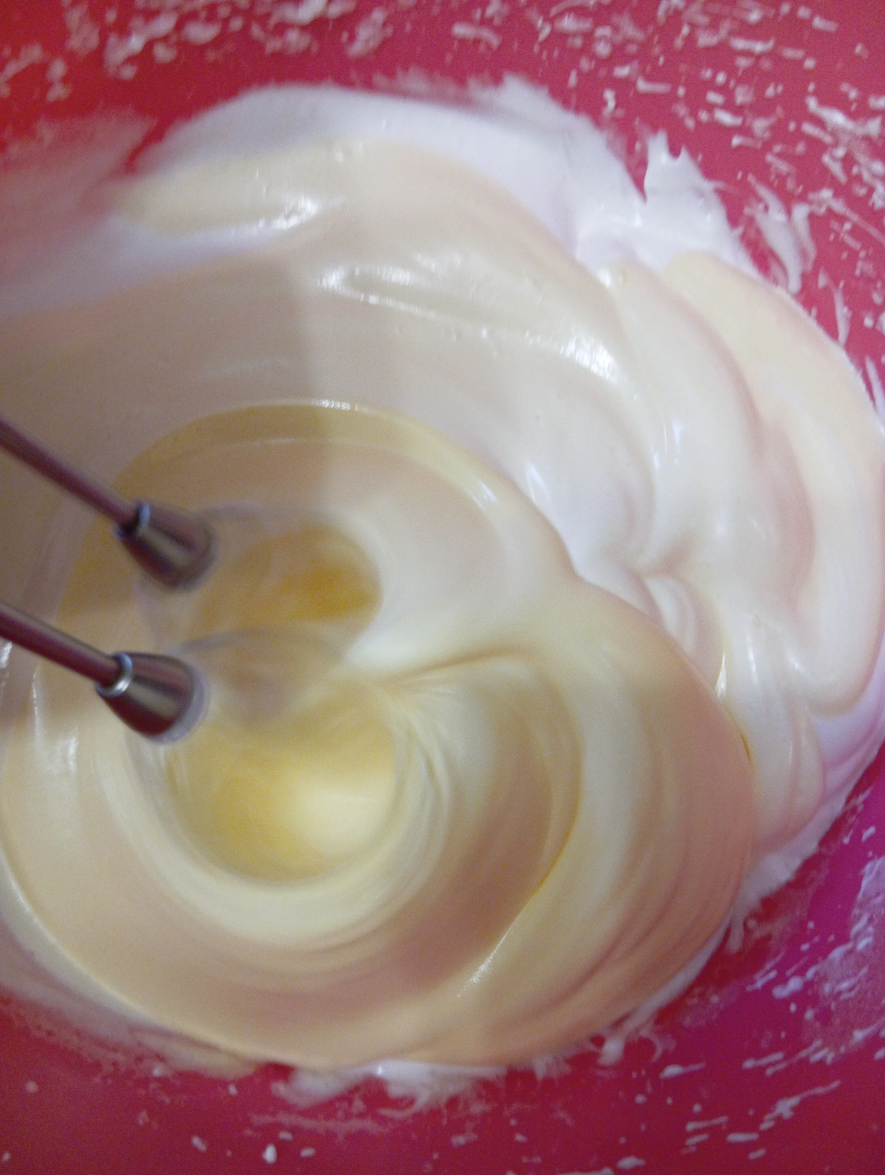 Когда белковая масса обретёт крепкие пики, добавьте по одному желтки и взбивайте ещё 2 минуты.