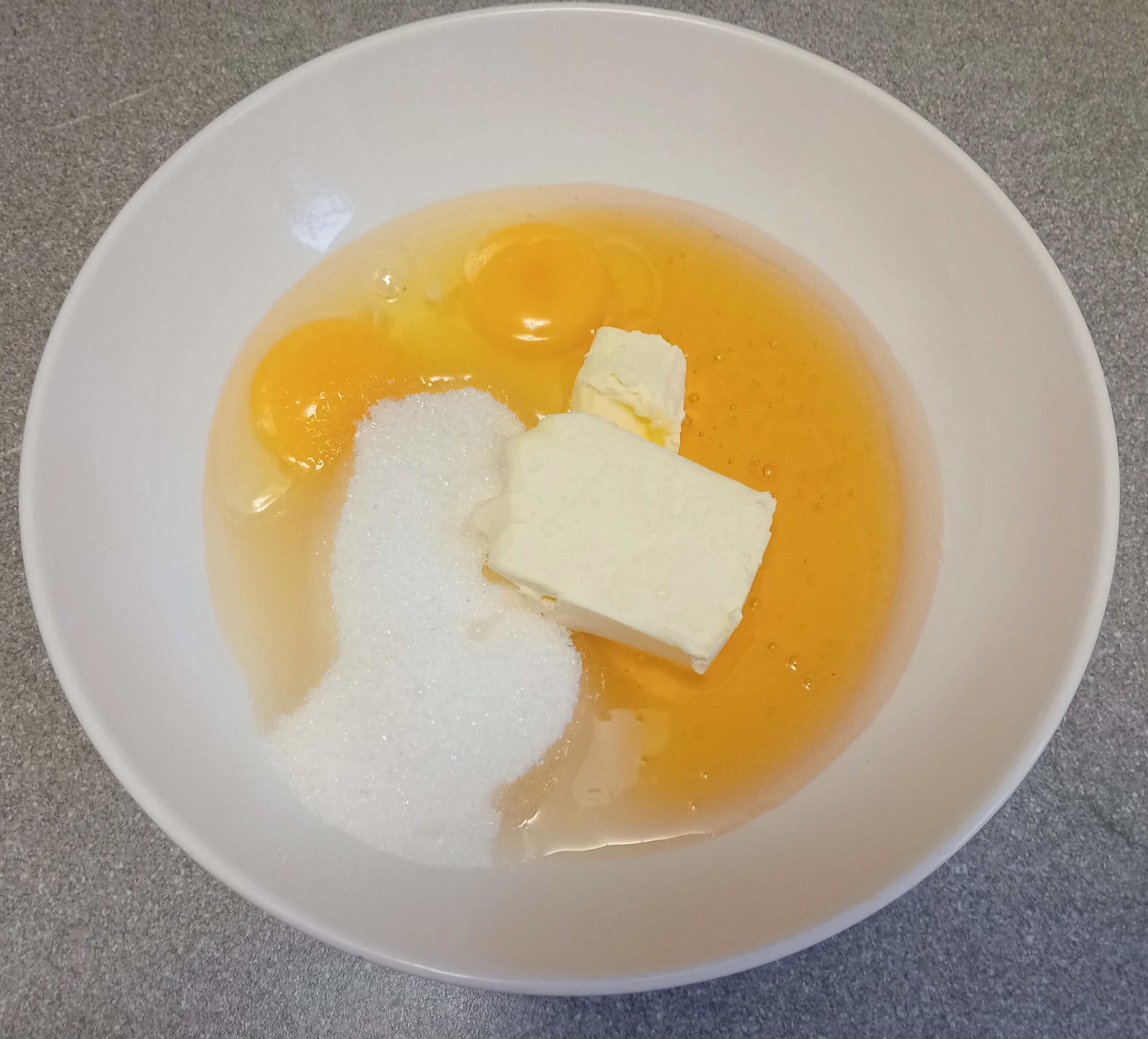 В миску выложите сливочное масло, сахар, соль, мёд и яйца.