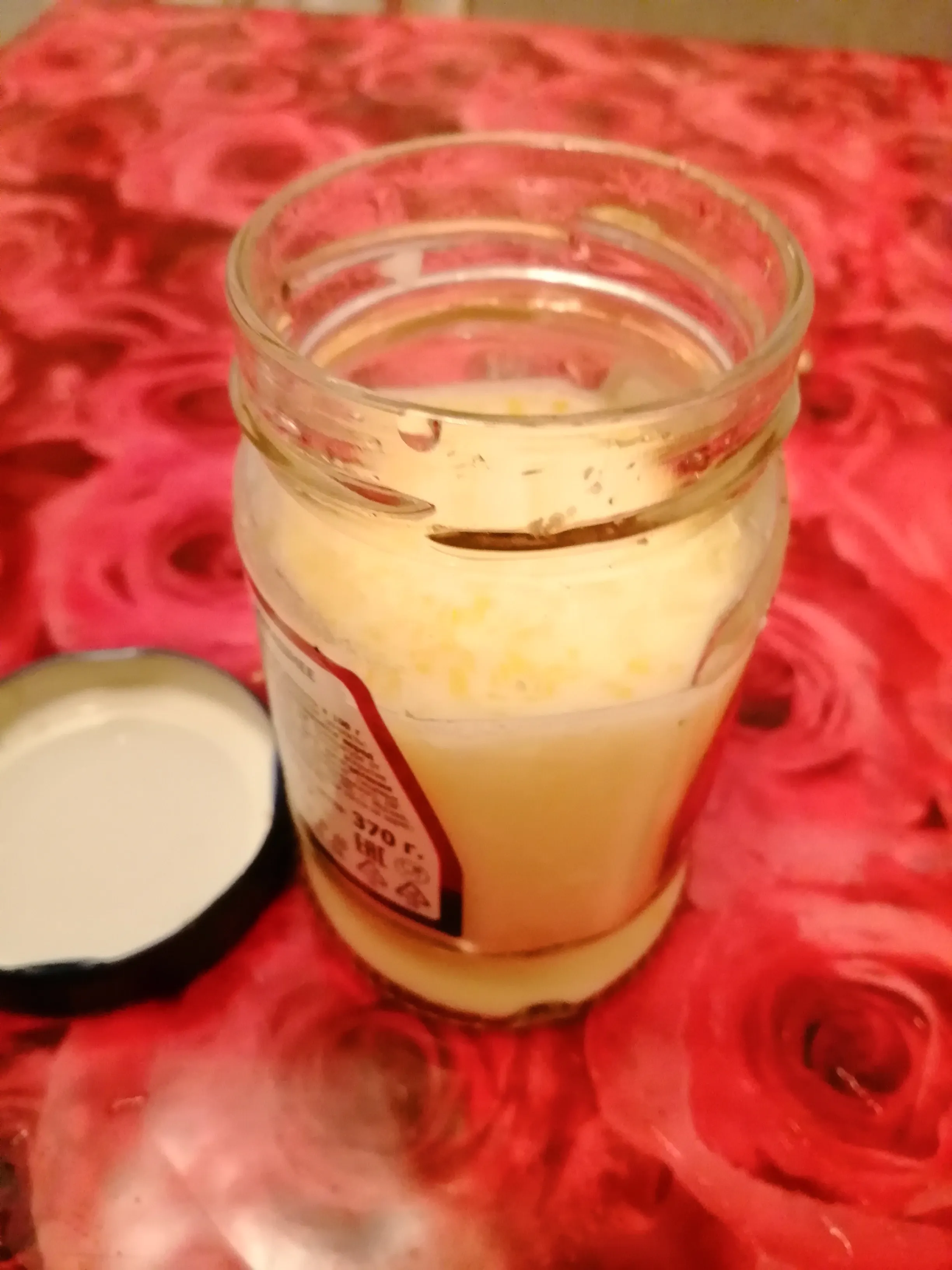 Добавьте сахар, соль и перемешайте. Перелейте в стеклянную банку.