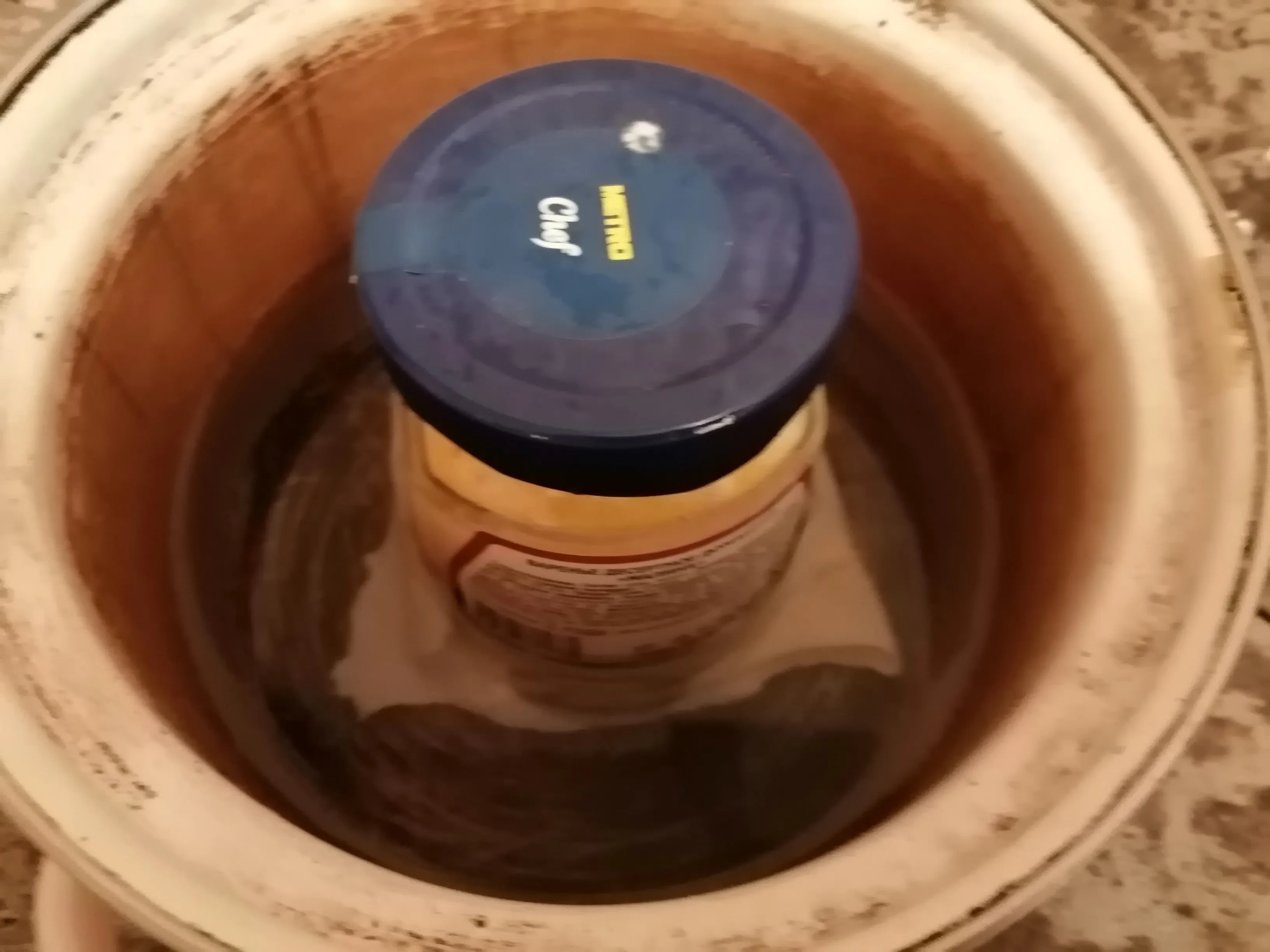 Готовьте на водяной бане до готовности (минут 15-20). Не забудьте положить сливочное масло, чтоб легче достать потом. Подложите под банку небольшую тряпочку, чтоб банка не лопнула. Закройте крышкой.