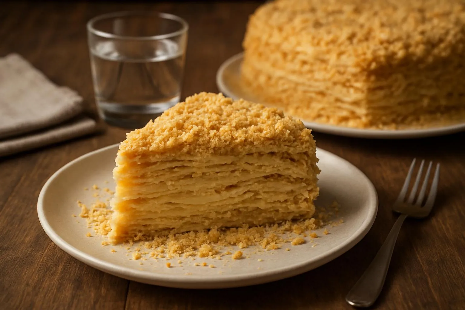Классический торт Наполеон — легенда русской кухни, появившаяся в XIX веке. Слои хрустящих коржей с нежным заварным кремом сделали его одним из самых популярных домашних десертов. Сегодня этот торт остаётся символом праздников, семейного тепла и вкуса детства. Этот десерт всегда собирает вокруг стола всех, кто любит сладкое.