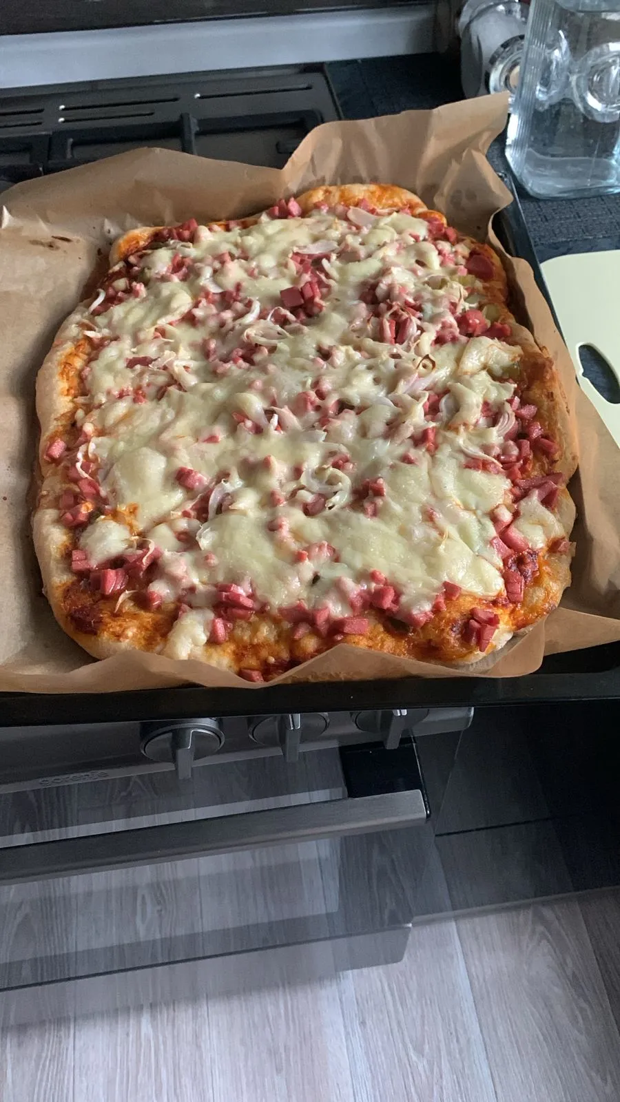 Обязательно хорошо прогрейте духовку перед готовкой, чтобы пицца была пышнее.