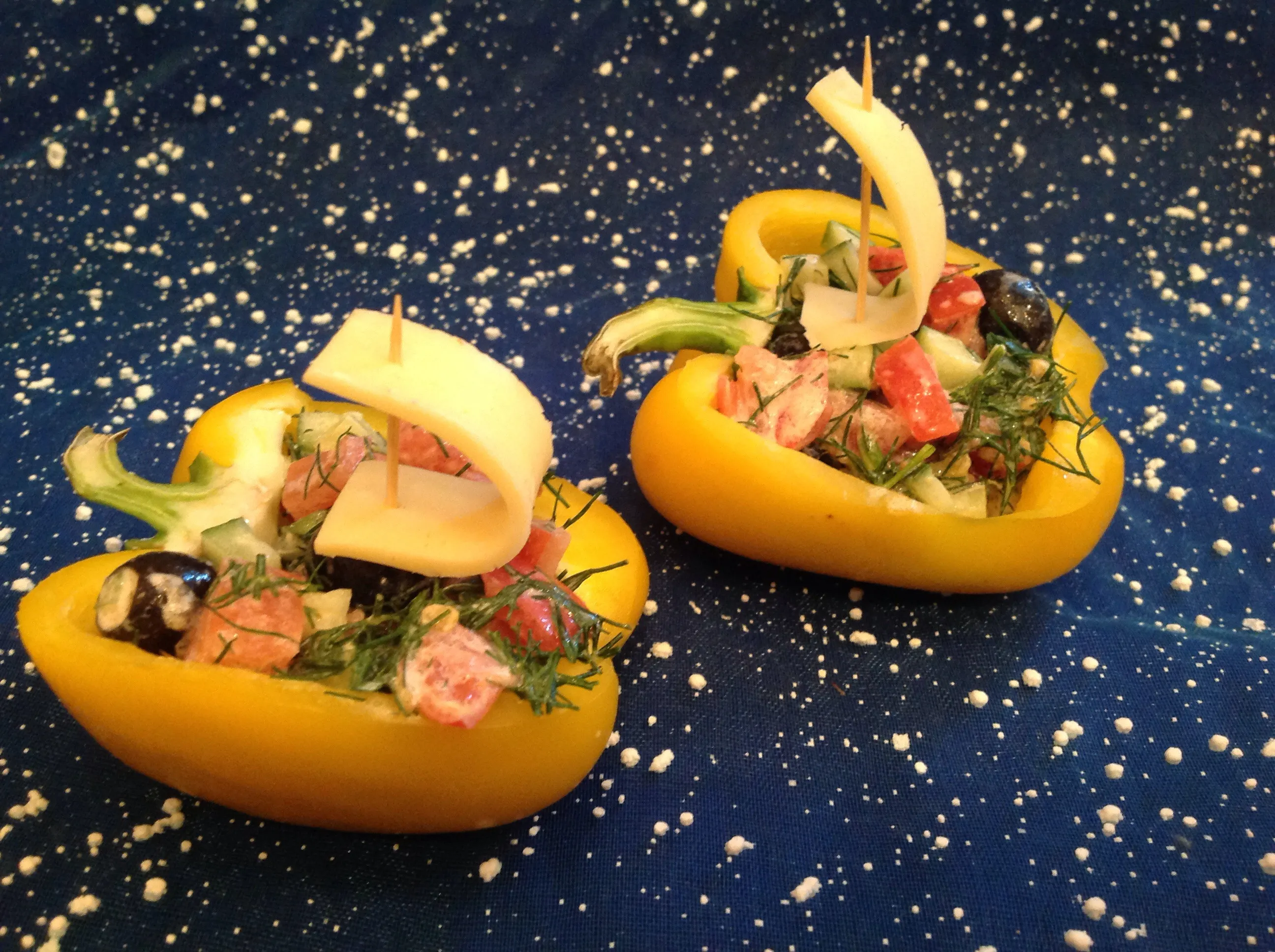 Сыр натрите на крупной тёрке или нарежьте тонкими пластинками. Маслины нарежьте на половинки.