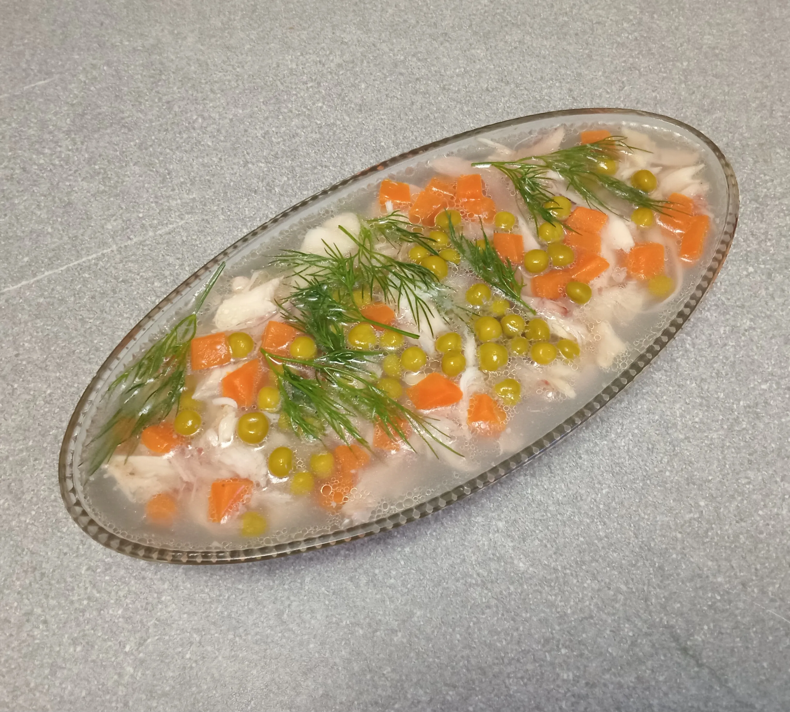 Оставьте заливное в холодильнике на два часа. Затем подавайте на стол.
