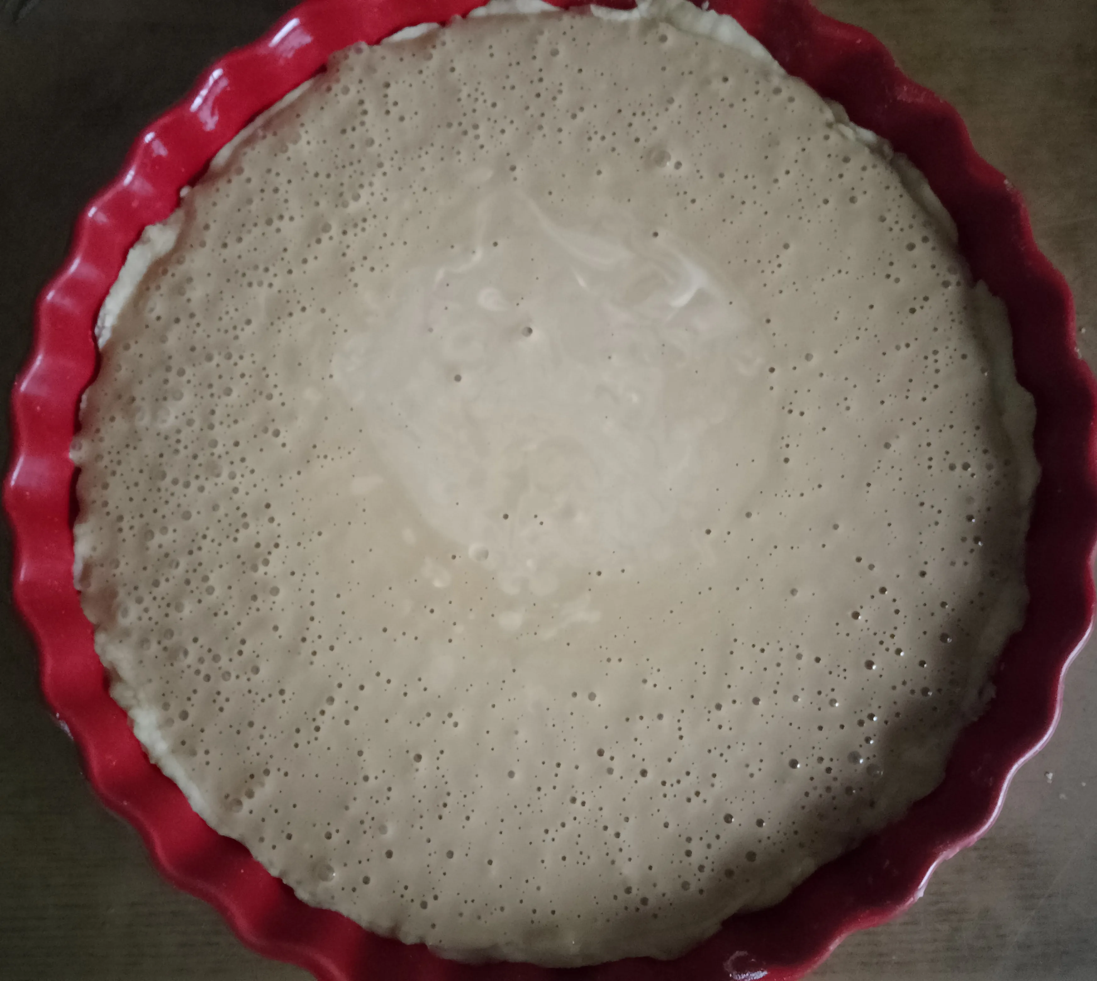 Перелейте заливку в форму с основой пирога и отправьте в духовку при температуре 170°C на 45 минут.