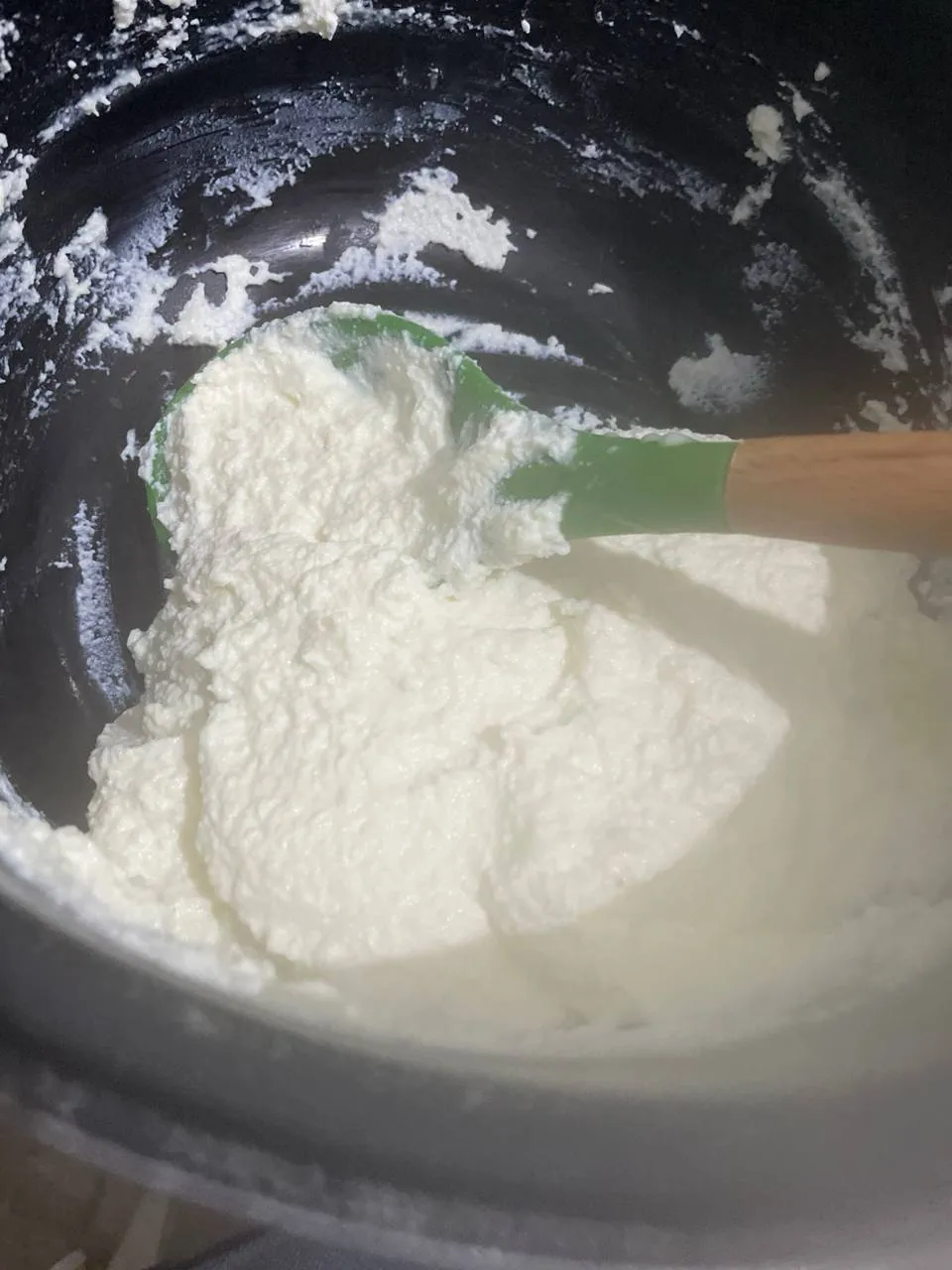 Размешайте сахар в сметане до растворения. Вмешайте творог. Если хочется однородной текстуры, его можно прежде протереть через сито, либо для смешивания воспользоваться блендером.