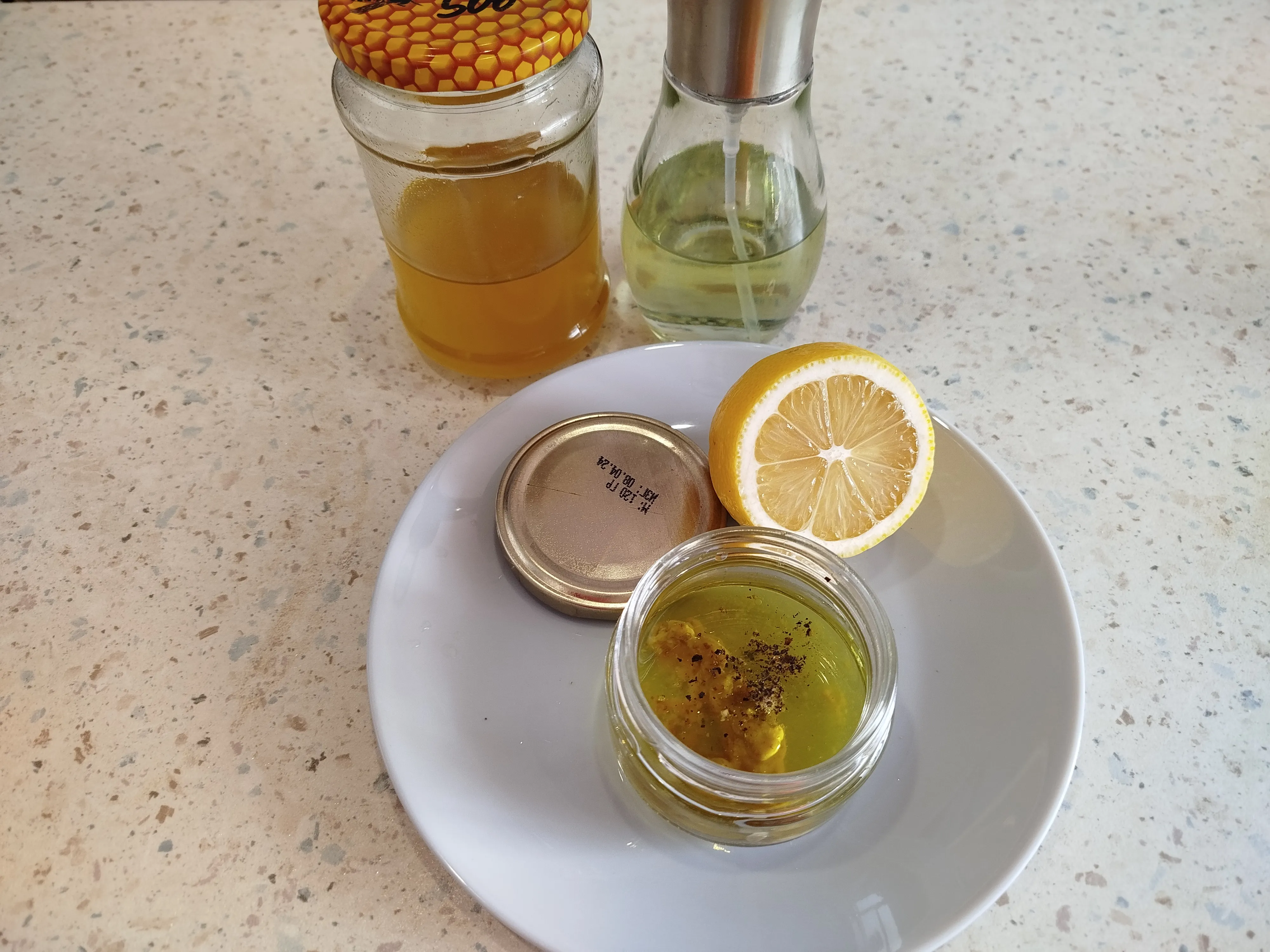 Для получения однородной и гладкой заправки смешайте всё, встряхнув интенсивно в баночке с крышкой. Мешайте около 2 минут. Корректируйте вкус соуса, добавляя соль, мёд, сок лимона.