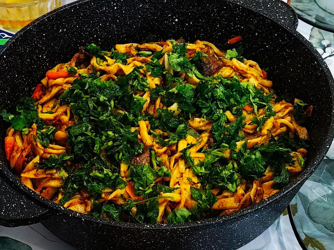 Если сделать домашнюю лапшу, будет ещё вкуснее.