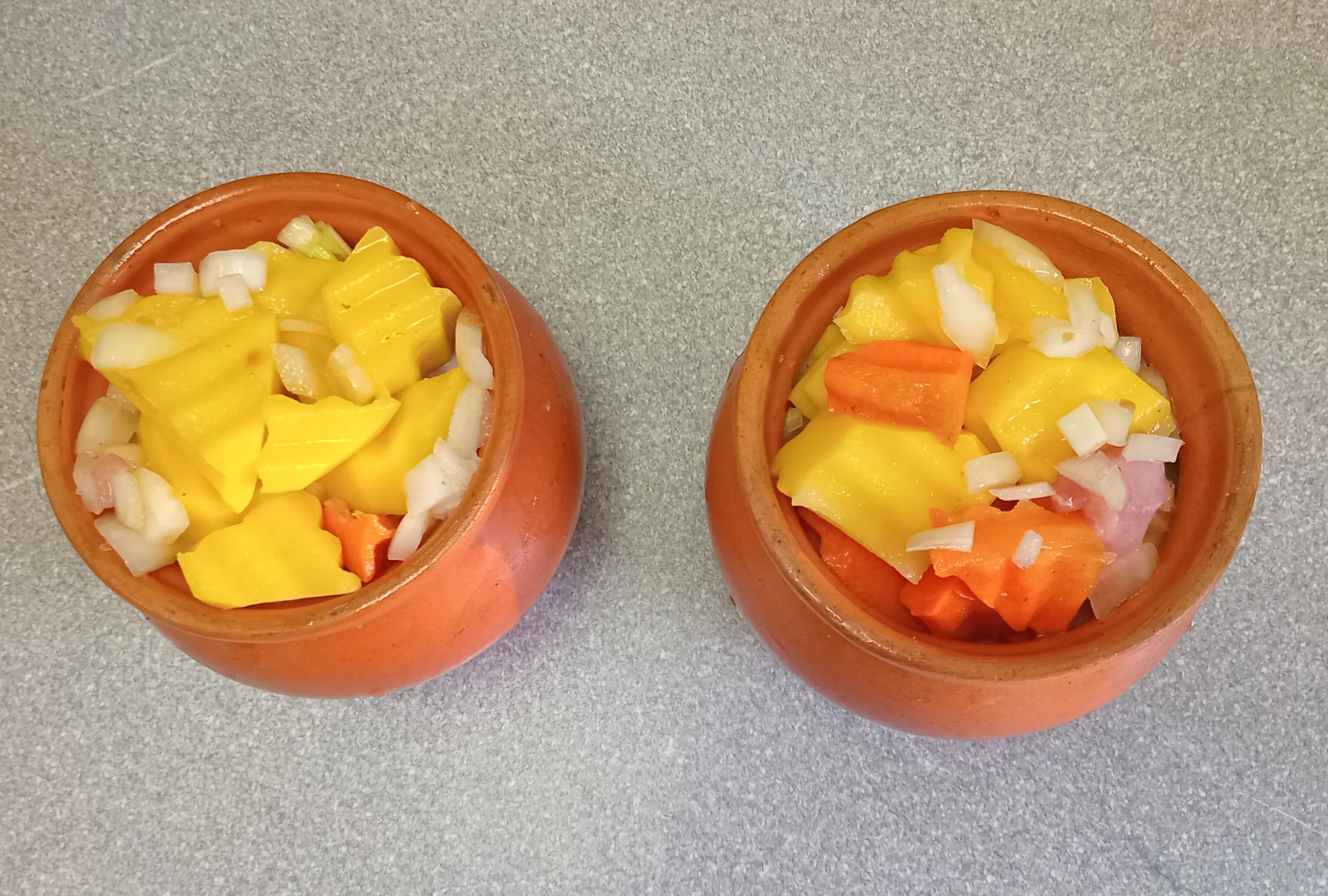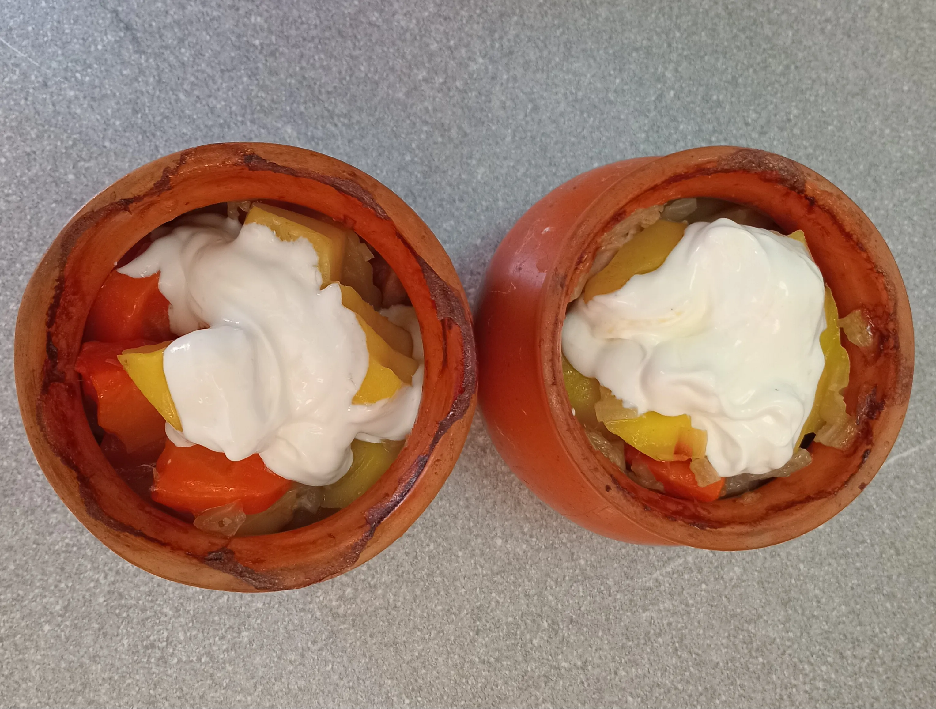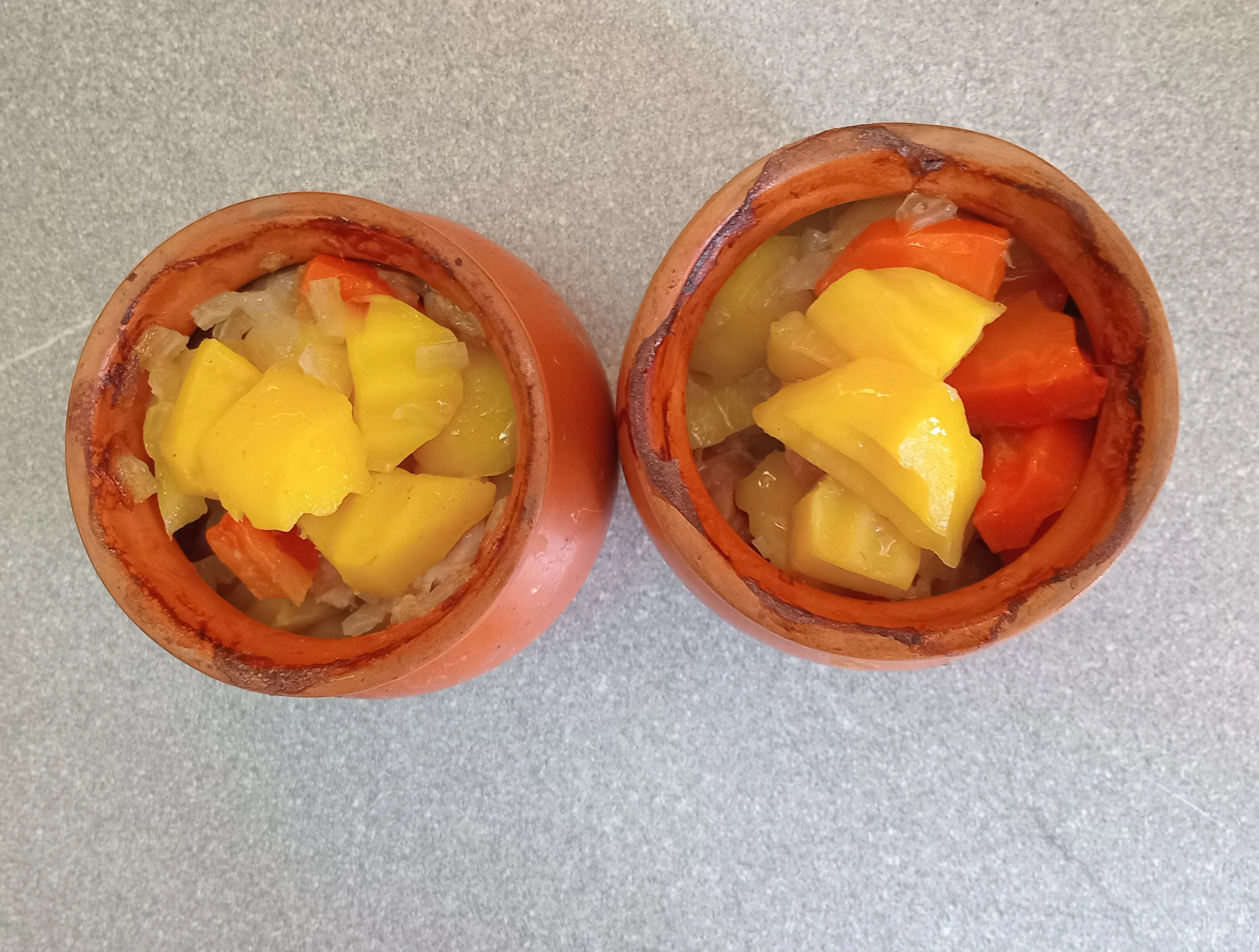 Разложите всё в горшочки для запекания.