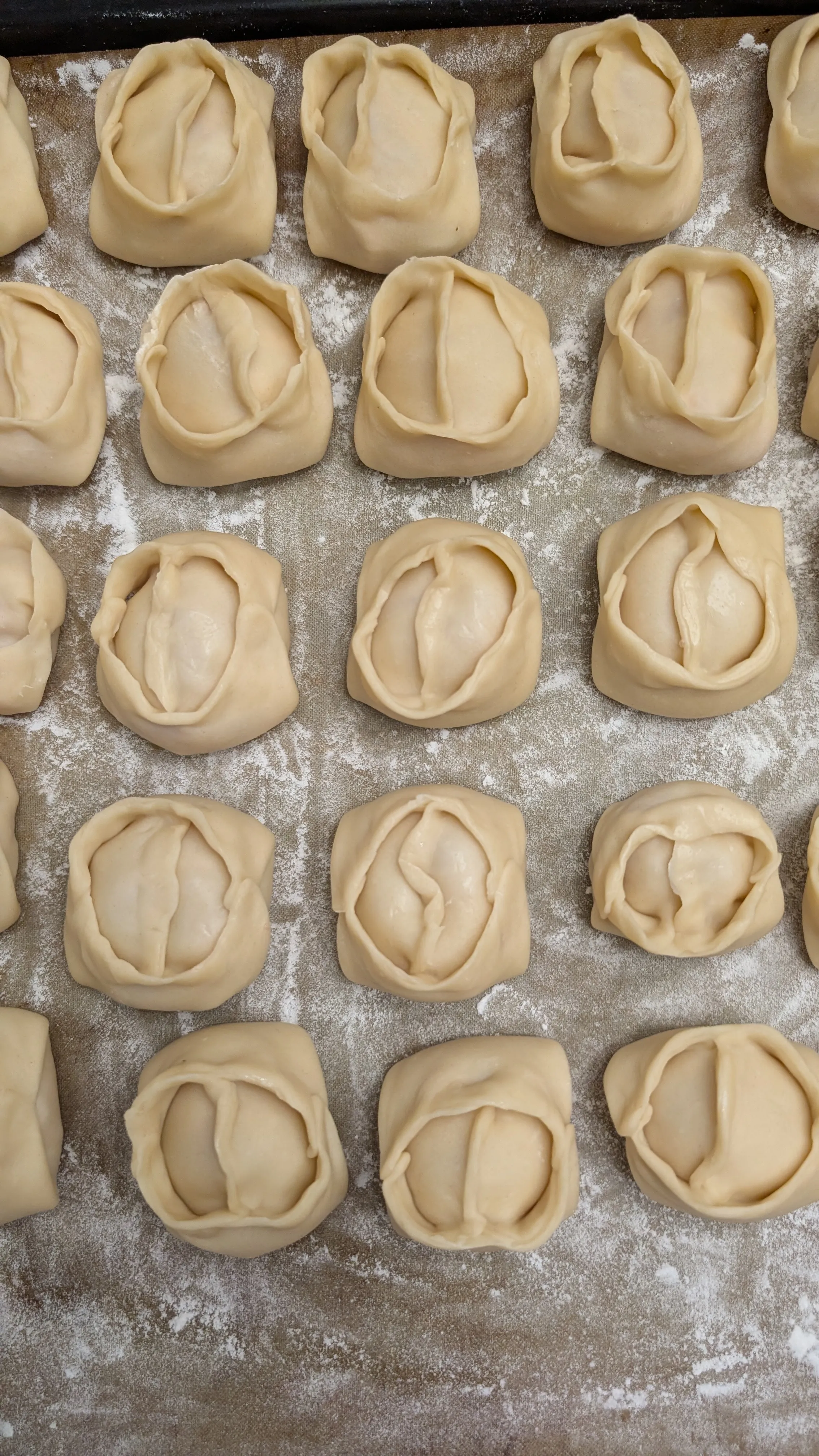 Любимое праздничное блюдо семьи автора. Готовить проще, чем кажется! Аромат восхитителен! А как объединяет семью совместная лепка из теста, и говорить не нужно! Приготовьте эти манты в качестве горячей закуски на новогодний стол.