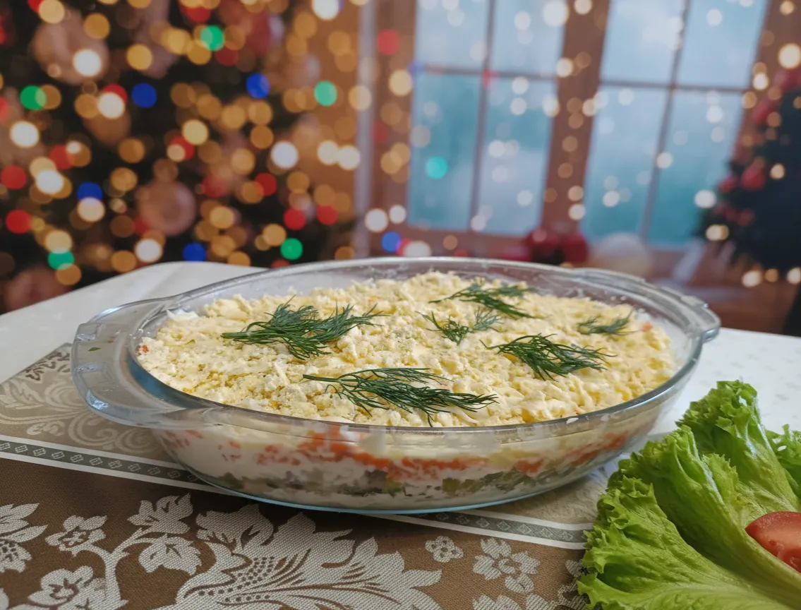 Салат «Мимоза» с печенью трески — это нежная и сочная вариация классического блюда, где рыбные консервы заменяются на печень трески. Гости в новогоднюю ночь будут в восторге!