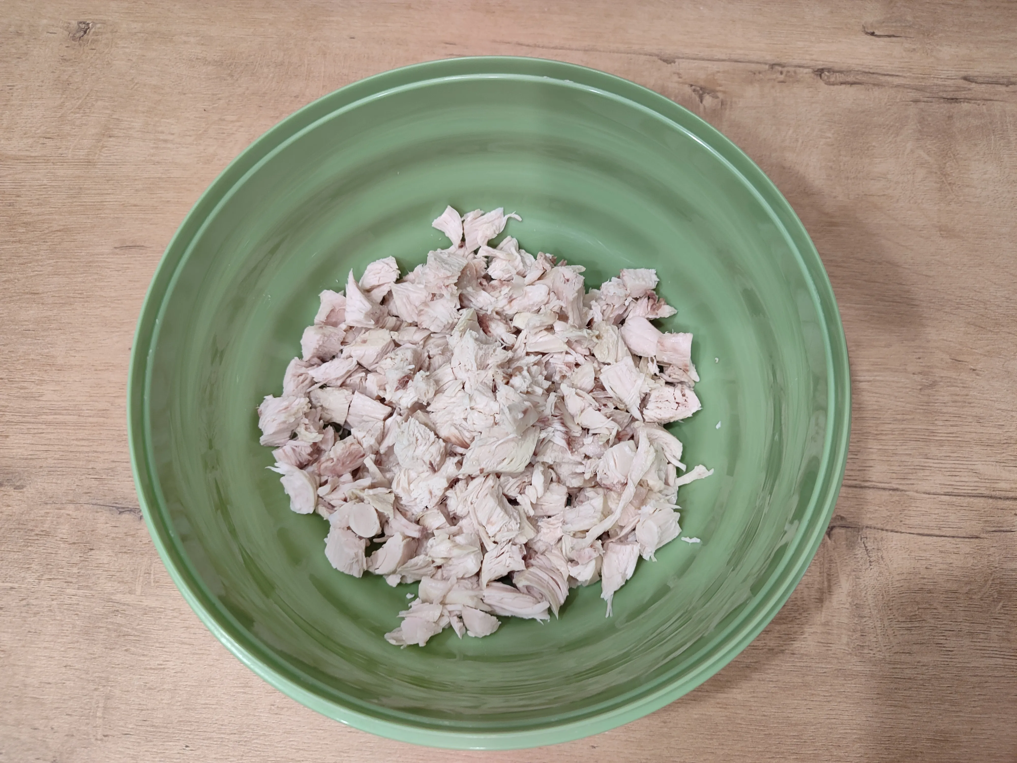 Подготовьте все необходимые ингредиенты. Варёную куриную грудку нарежьте на кубики.
