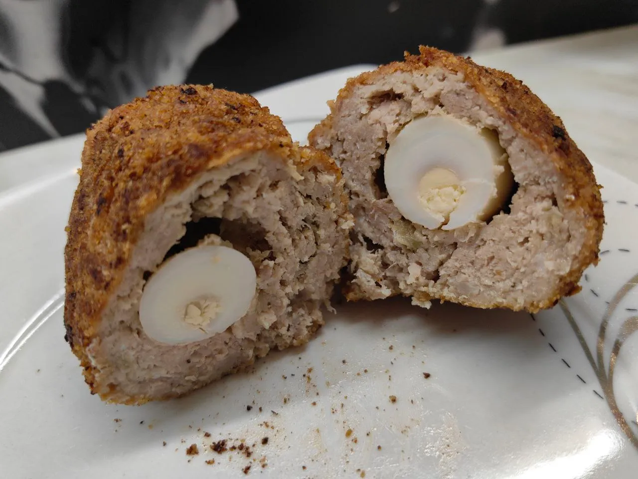 Варёное яйцо обваляйте в муке, положите в лепёшку из фарша, скрепите и придайте красивую округлую форму. Уберите готовые котлеты в холодильник на час.